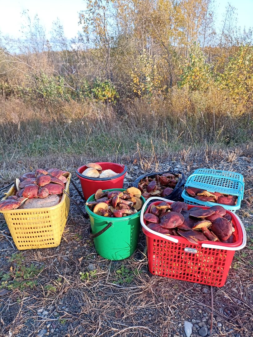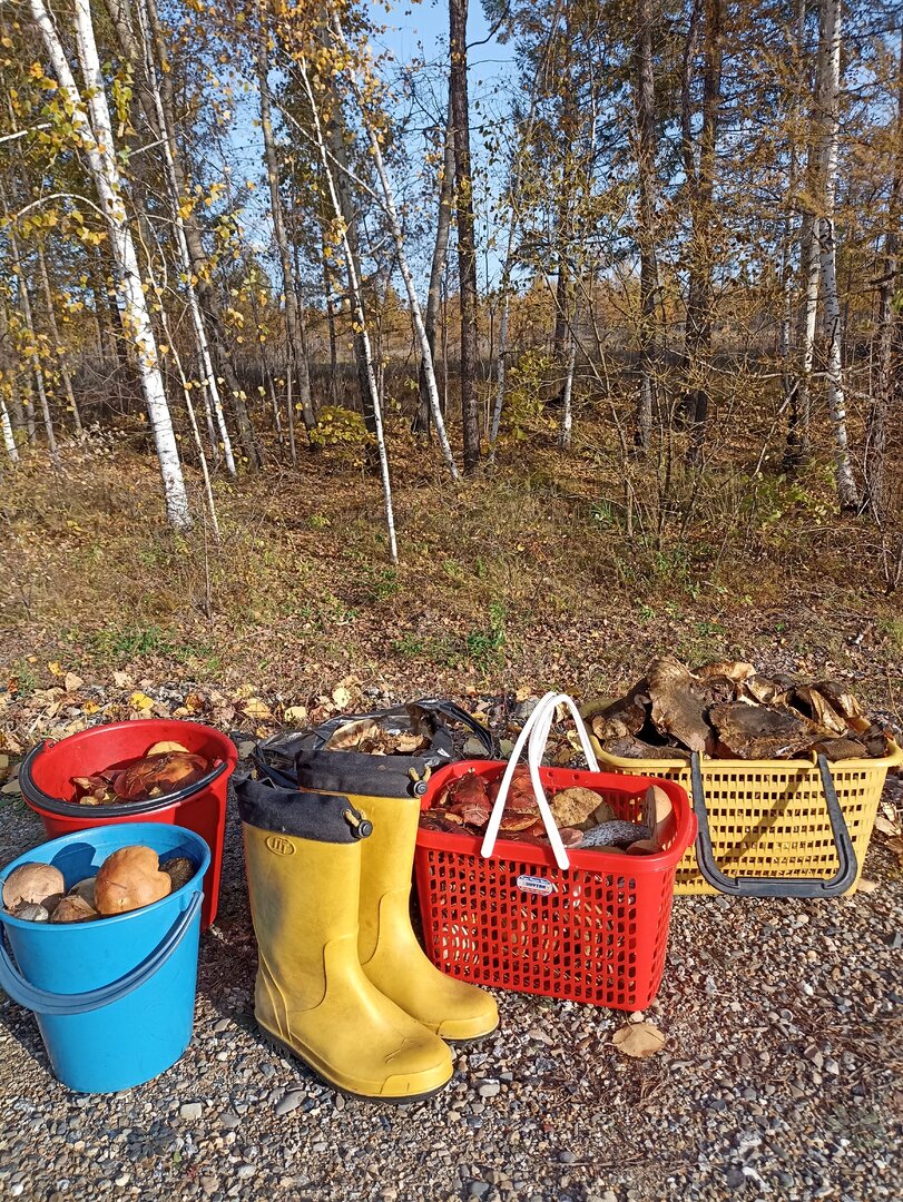 Позавчера и вчера. На двоих. В основном масленок, но и подосиновика по ведерку. Груздя надергали и белый встречался.