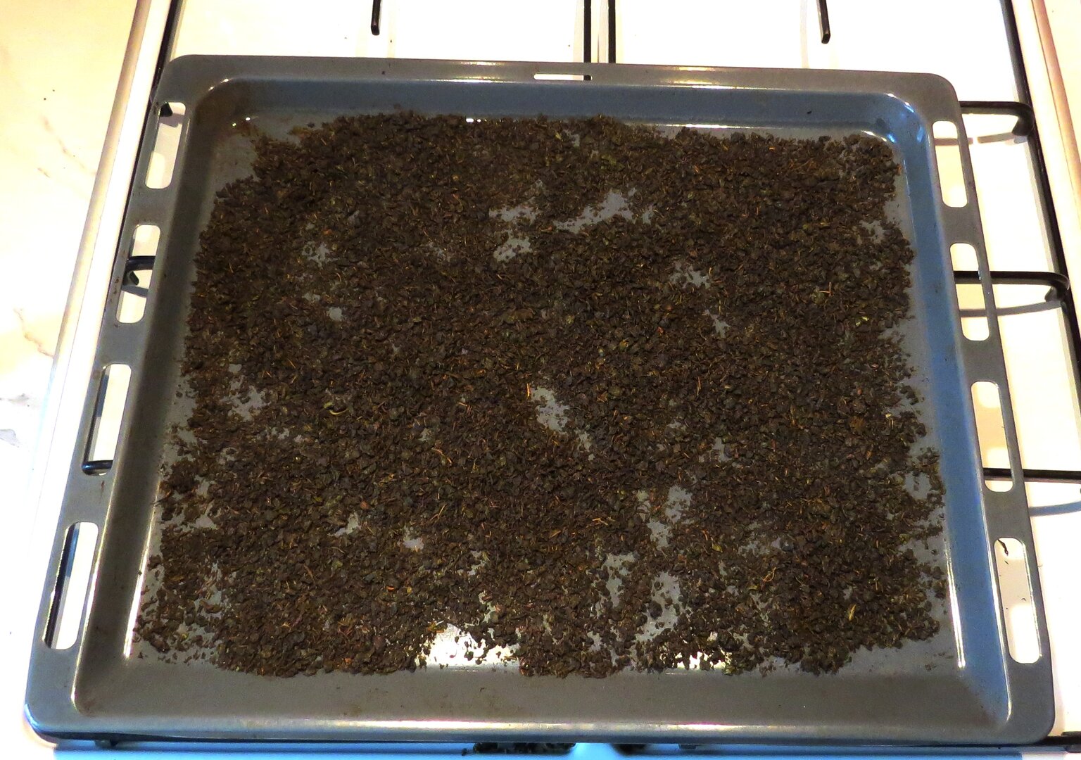 Сушим на поддоне при температуре 120 градусов часа полтора, периодически помешивая