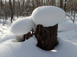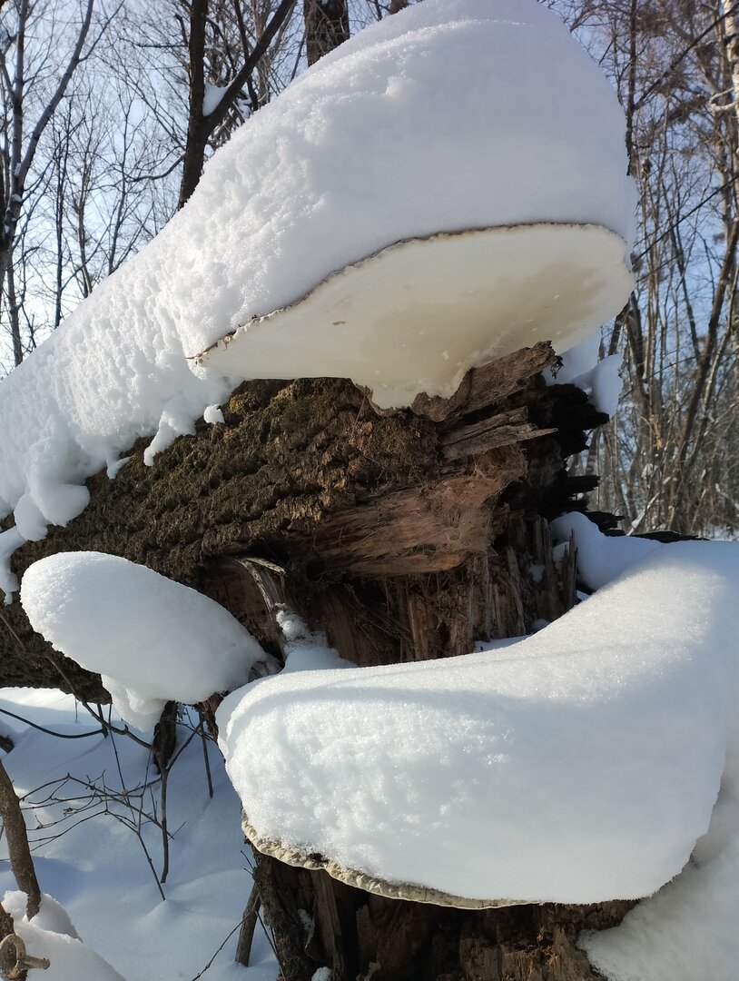 Сорока на хвосте... )) мол на западе оттепель и грибы зимние попёрли, вешенки, опята и прочие, те что на древесине. У нас вроде тоже холода отступили, пошёл проверить поляну... и точно, стоят красавцы)))