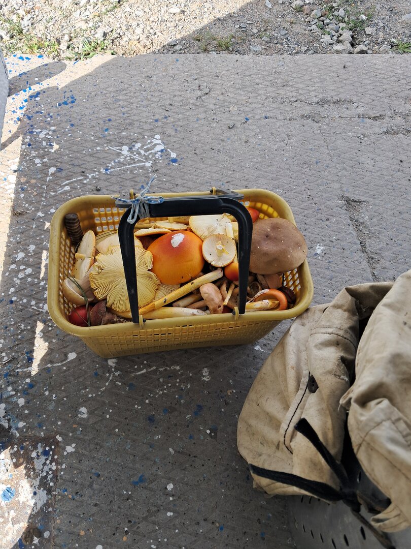 - Из Анастасьевки сегодня одна корзина: белые берёзовые, кесаревы, моховики лиственничные, маслята раскрашенные, подосиновики, вёшенки лёгочные, два боровика, один маслёнок лиственничный.