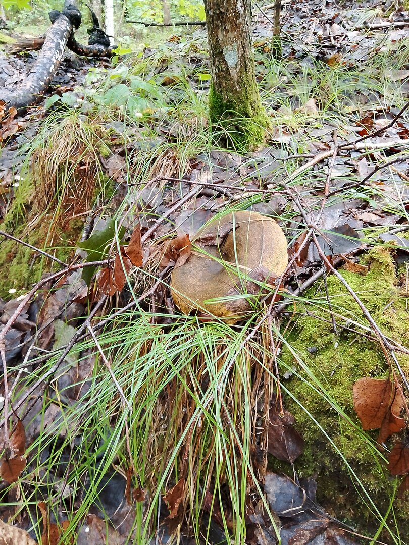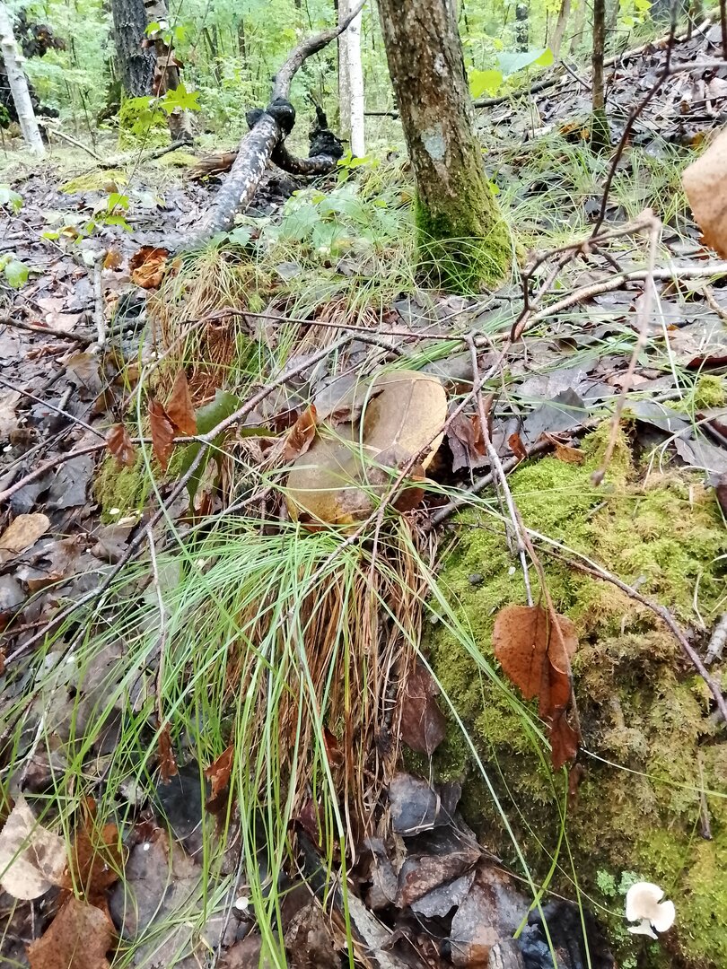 Сегодня район Анастасьевки. Грибов мало, в основном сухой груздь. Черного немного. И один сумасшедший белый, но большой.