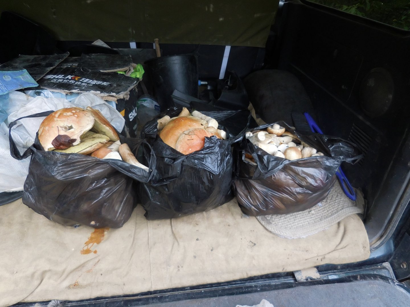 вчера,рано утром, выскочил на окраину города - наполнил всю тару которую нашёл в машине - ведро,несколько пакетов больших и пропиленовый мешок.Естественно весь гриб - мелкий.крупный просто не успевает отрастать, т.к. народу больше чем в городском парке.