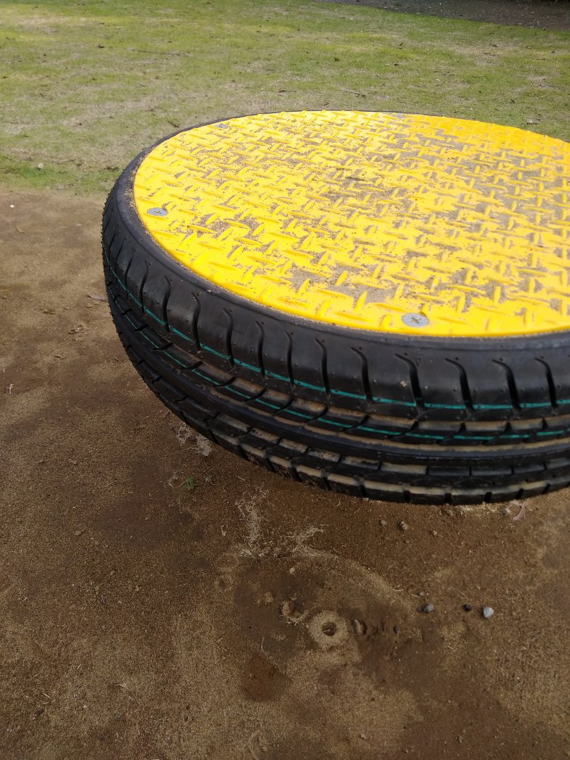 на детской площадке случайно заметил, что покрышки, из которых сделаны, какие то снаряды для занятий, совсем новые.