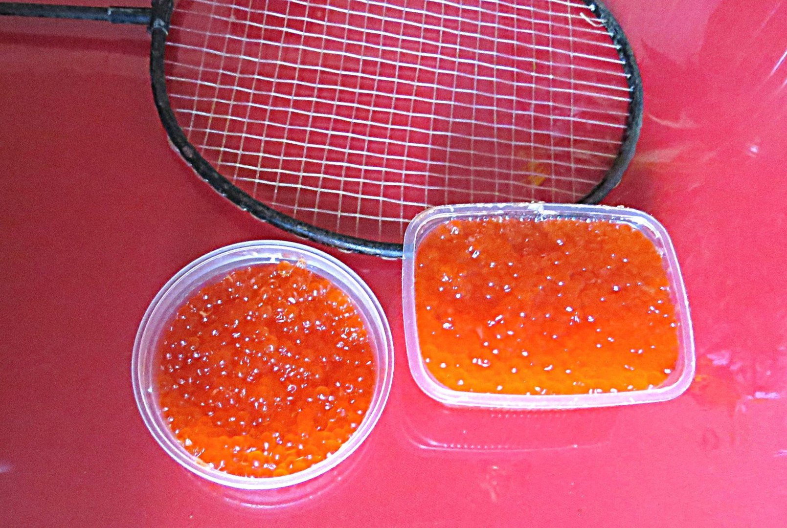 Игнат, делаю так: венчики - которые ты описываешь - из проволоки, а не из ленты - правильные венчики. Ведро из жёсткого пластика с о скруглённым переходом стенки в дно (в принципе - можно и в "кубике" нормально всё делать). У меня в частности - 8 литровое, чтобы миксер без плясок с бубном/впихиваний/перекосов до дна (угла) доставал. Кладу ястыков 3-6, в зависимости от их размера. Ставлю самые малые обороты. Венчик погружаю не более половины его (рабочей части венчика) высоты, иначе наматывается весь ястык (плёнка вместе с икрой) и этот квач поднимается к миксеру - за счёт трапециевидности венчиков. Движения круговые по дну тары. Смотришь на обороты, мало - добавляешь ступенчато. Периодически снимаешь с венчика плёнки ястыка - по мере очистки икры от плёнок. Когда все плёнки вынул, то чуть добавляешь оборотов (на всех миксерах вроде ступенчатая фиксированная регулировка, верно?) - и проходишь круговыми движениями контрольный раз. Этот объём ястыков (3-6) грохочется миксером минуты 2-3 - не более, а как правило - и быстрее (всё зависит от степени зрелости икры). Немаловажно: я стараюсь брать в засол икру которая не вросшая в плёнку, то есть ястыки сыпать икрой не должны, но - должны беспроблемно раскрываться, то есть - без усилий. А молодую икру ты ни ракеткой, ни грохоткой, ни ложкой, ни миксером без потерь не снимешь с плёнки... как то так. Отходов икры практически нет: отдельные икринки, которые иногда просто лень снимать с тары - не в счёт.