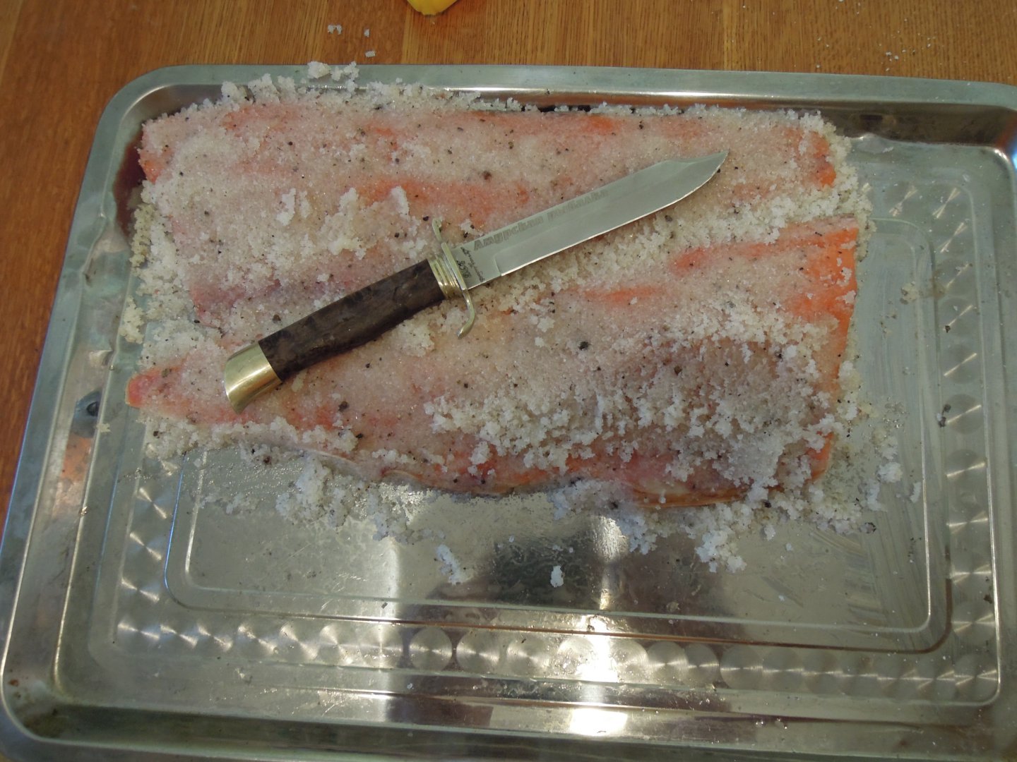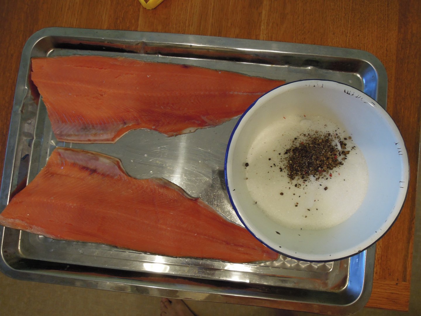 Периодически делаю так-рыбу тоненькими ломтиками(пока на оттаяла) и на ровную поверхность. Посыпаю "Вкусной солью"и чуть перчика и буквально по несколько крупинок сахара. Чуть подсохла-перевернуть. Вторично солить не нужно.Подсохла,и вперед... Узнаешь совершенно другой вкус рыбы.Приветствую, а если так промороженную кету солить то как сроки изменятся? т.е. после посола и укладки в контейнер когда есть можно?