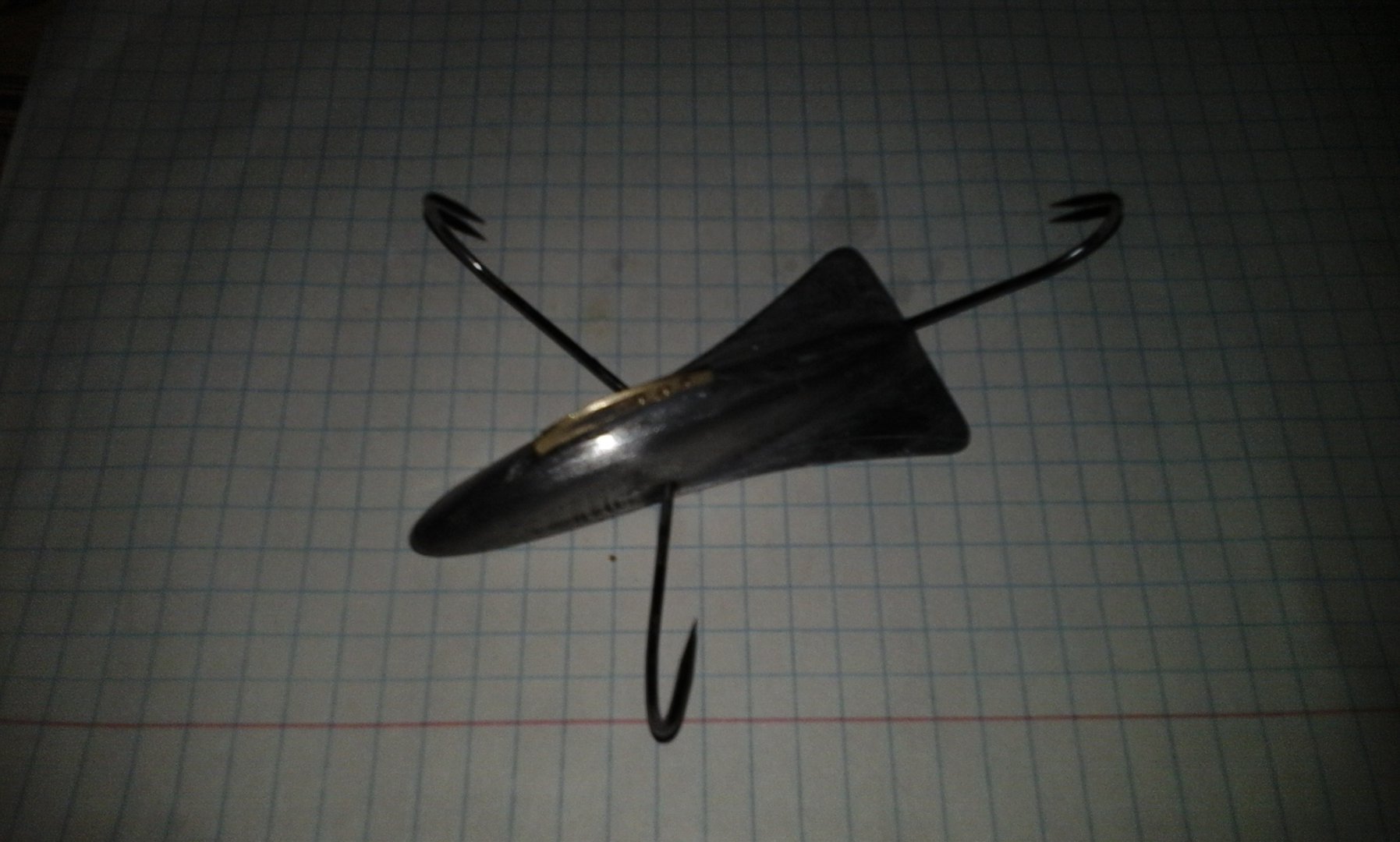 Вот сегодня утром сваял из 50 рублевой старой монеты и ж\д крылышек на колесах. И крючки самодельные без бородок. Получилась блесна "завораживающий взгляд". Думаю щуку заворожит.