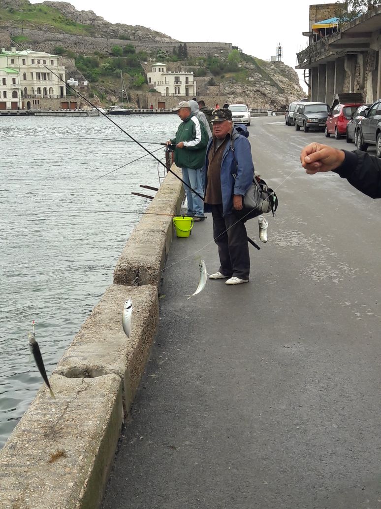 "Клевые" места надо занимать на с ночи (некоторые рыбаки кооперируются бригадами и по очереди дежурят с полуночи). Я конечно фанат рыбалки, но провести простую бессонную ночь на набережной Ялты не собирался. Заранее созвонился с капитаном пришвартованного катера и заранее застопорил место на его борте (звонил за 2 дня до рыбалки) и ловил с борта судна (уж лучше отдать 20грн, чем провести ночь на причале). С рассветом мест для ловли на набережной Ялты уже не было: