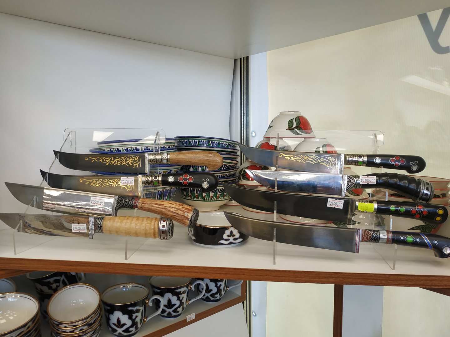 Сегодня зашел в магазин купить орешков на Батуевке. Это слева от входа самбери, а там узбеки пчаками во всю торгуют.... правда не точат их чтобы не привлекли за продажу холодняка.....