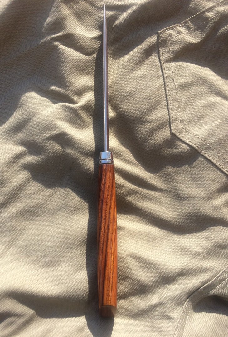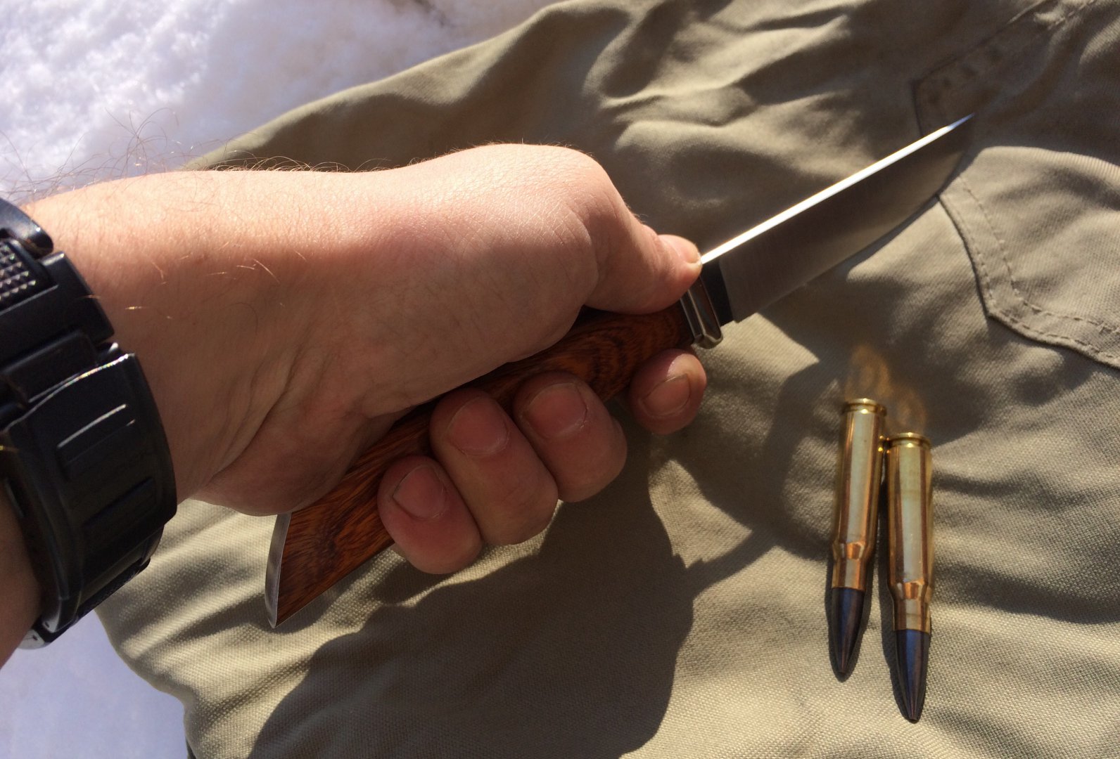 Хороший нож получился. Сталь и деревяха достойные :E058:. Слесарка клинка от Андрея, как всегда на высоте.