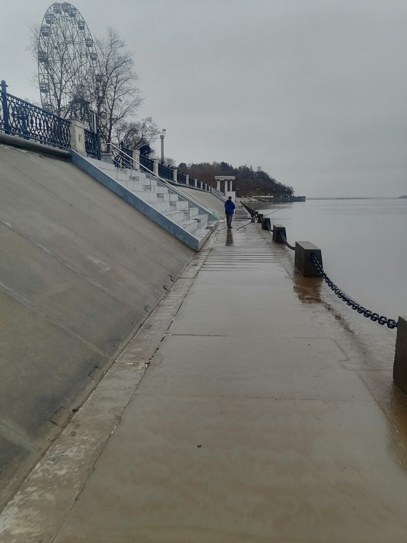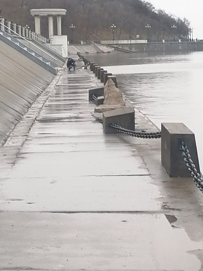 По Амуру идут редкие льдины. Чисто. Уже замечен рыбак. Ловит лещей на малька и кальмар. Малявочница рядом стоит. При мне вытащил неплохого леща, пока с ним разговаривал. Уже второго. Так что набережная рыбалка открыта. Вода упала неплохо за ночь.