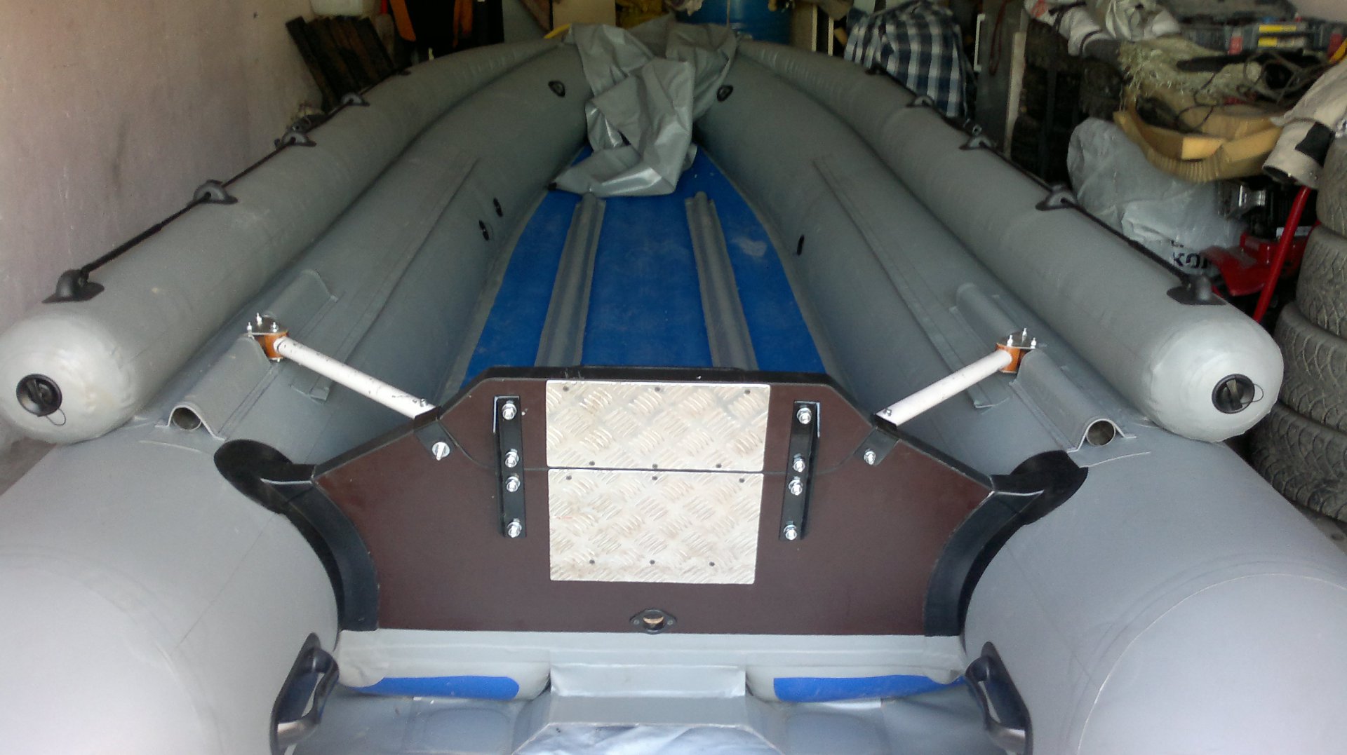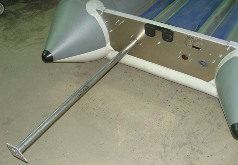Сделано усиление транца как на аэролодках . По бокам дна Выдры, были вклеены две полоски ПВХ для разборной ал. трубы диаметром 40 мм и длинной 3000 мм .