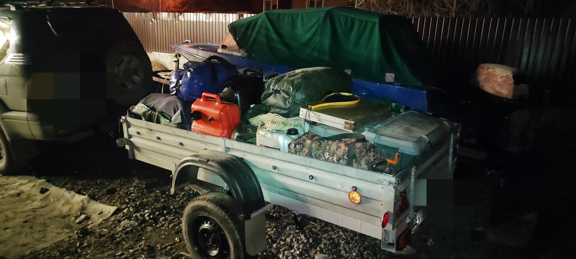 Из двух прицепов понравился этот (не мой). Курганский. Лодка пайолка+вещи прямо в ней. От Ха до Славянки и обратно. Были ямы и кочки думал сейчас вылетит всё к чертям из прицепа, но он достойно только плавно качался вверх-вниз. В общем только такой или поменьше))