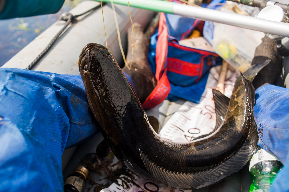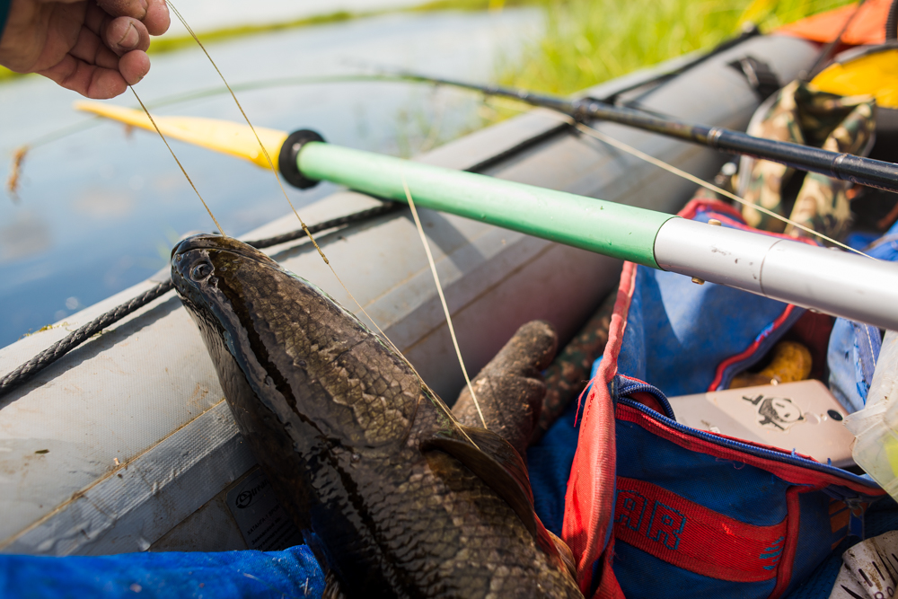 Порыбачил в итоге до 14, и вышел обратно домой, натаскался в доволь. Места стоянки змея были предсказуемы, одно но что он ни как не показывал вида что он есть, ни чавкав ни движения, просто кидаешь где он обычно должен стоять, а он тут как тут, и когда уже сикешь, вокруг вода закипает, оказывается они стояли кучей, можно было возвращаться на это место не единожды и брать от туда по тихой, но на это нужно много времени и тогда бы исследовать озеро бы не получилось. Интересно одно, что по приходу на место выгрузки лодки встретил двух рыбаков . У них день пошел в точности наоборот, ни одного змея не поймали, либо поплыли по тем местам где я проплыл и шугнул змея либо немного не там искали, в этот раз не было такого что кидай куда угодно и там рыба, нужно было все равно немного головой подумать и веслами поработать. Вот как то так я провел праздник. Помотал специально что бы взбодрить тему, и что бы рыбки попробовали ловить эту интересную рыбу. Главное не забывайте принцип поймал отпустил это главное, тогда еще наши дети смогут насладиться такой рыбалкой, кушать конечно можно брать, но нужно знать меру один, два смотря какая семья. Если забирать сотнями то и второй раз такого удовольствия не получишь, а покушать можно и в магазине купить. Всем удачи.