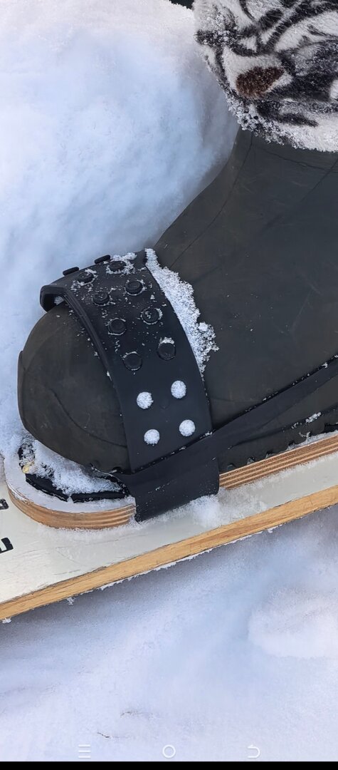 Что у вас всех за проблемы с. Я остановился на креплении второго типа, из " эвенкийских" выбираться сложно после падения. Брезент и кожу пробовал, они меняют длину по ходу дня, с изменением температуры, намоканием. Управляемость у них, из-за мягкости материала ,не очень. В этом сезоне поставил пластик, пробег пока не большой , но мне понравилось. Он жёсткий, управлять гораздо лучше, ну и по ступне не перемещается. Надеваю с резинкой, так называемый армейский вариант, без неё не получается ходить нормально ни с какими ремнями. Интересен ваш вариант, возможно установлю её стационарно. Посмотреть вложение 434235
