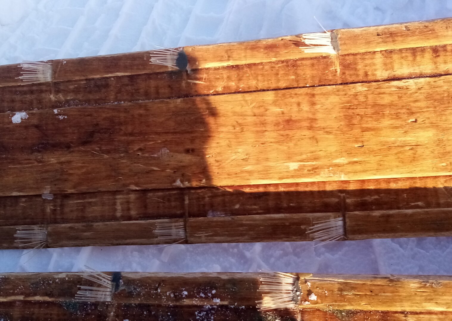 Решил показать свои лыжи. Самопальные из тополя, с противооткатной щетиной из лески 0,8. Служат верой и правдой уже многие годы...