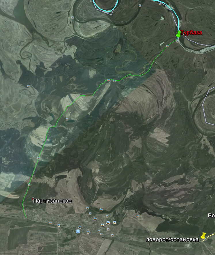 Двухэтажный кирпичный корпус турбазы на заливе Дашкевича. Заезд - через Партизанское. Ценник - 500 руплей/место. Сауна/баня - 700рэ/час. Телефона нету у меня, директора турбазы зовут Александр, на форуме где то было, поспрашивайте. Зелёный трек - с трассы на Бирик до т/базы.