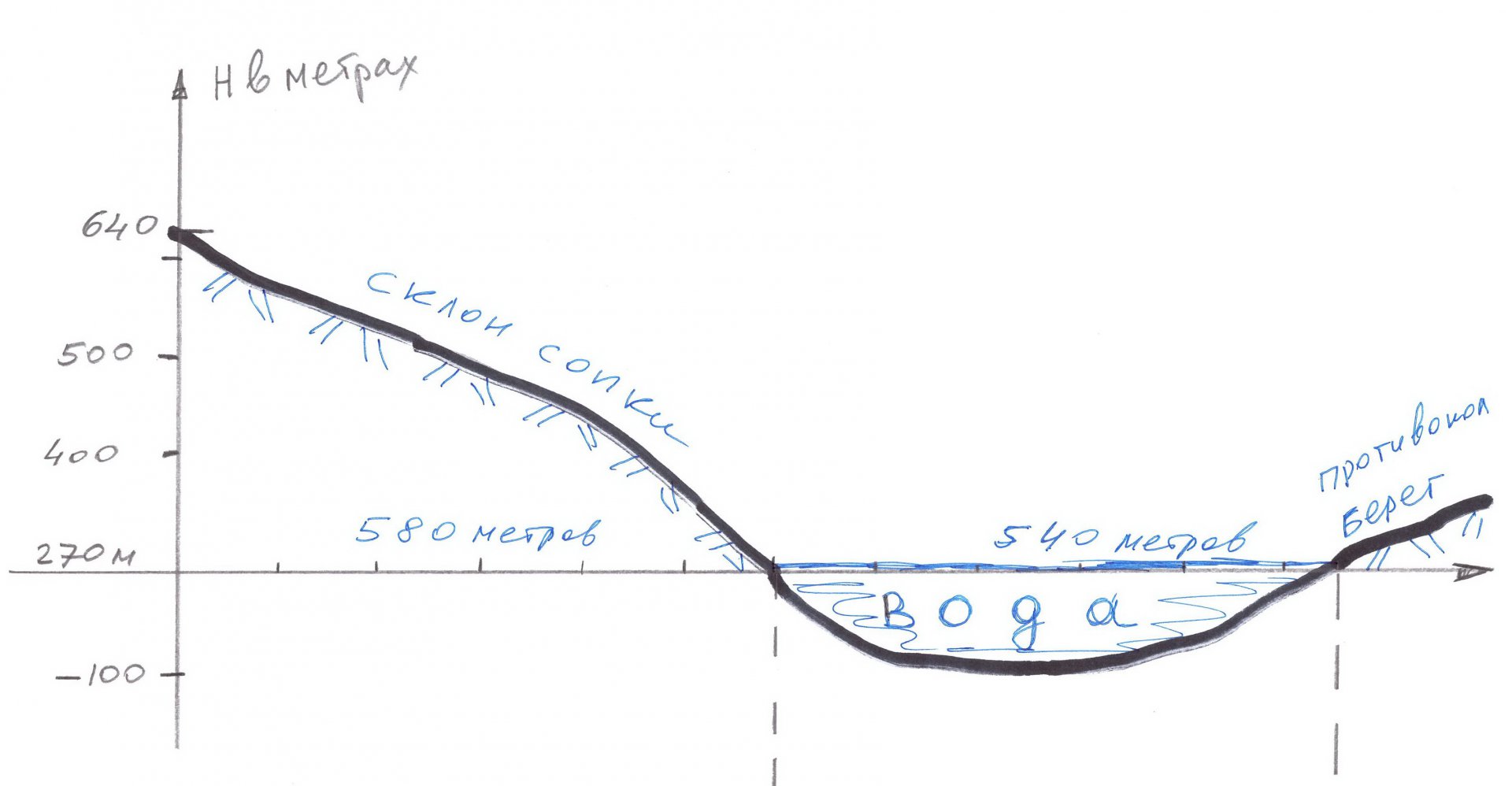 Сергеич, только эта теория абсолютно не соответствует реальности. В теории ты посчитал, что плоский камень скользит по плоскому камню.Так бывает только в задачках учебника. Фиг там. Там настолько грунт переплетен скальными породами, корнями, промерзшим грунтом и пр. И еще- откуда ты взял такой угол наклона? Перепад высот склона 370 метров на 680 метров длины. Получается максимум 30 градусов. Это конечно большой склон, но не 45 градусов, как ты посчитал. То есть свою теорию энергии уменьшь раз в пять, как минимум. Урежь осетра! Раз в десять даже урежь! А нижняя твоя картинка вообще не выдерживает критики- у тебя там отвесный обрыв.