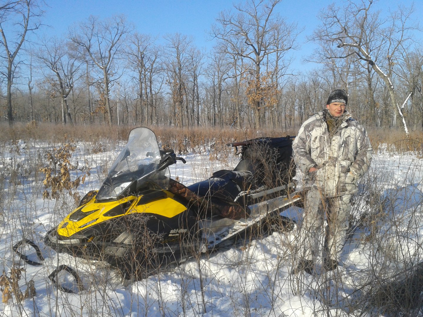 Я выше уже писал, что вожу в чехле. Чехол в нутрии поролоновый. За 2300 км. потертостей на прикладе и стволе не обнаружено. Под левую руку сделал специально. Курок газа с права, ружье с лева. Если, к примеру, есть договор на отстрел волков, то пока снегоход еще двигается, левой рукой берешься за цевье и лишь отпустил газ уже готов к выстрелу. Но это только на волков! Фото ружья в чехле: