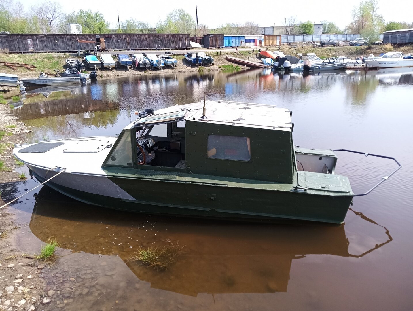 Первый этап окраски. Половина днища и половина борт-рубка плюс кормовая часть. Завтра зеркально. Потом палуба и крыша.