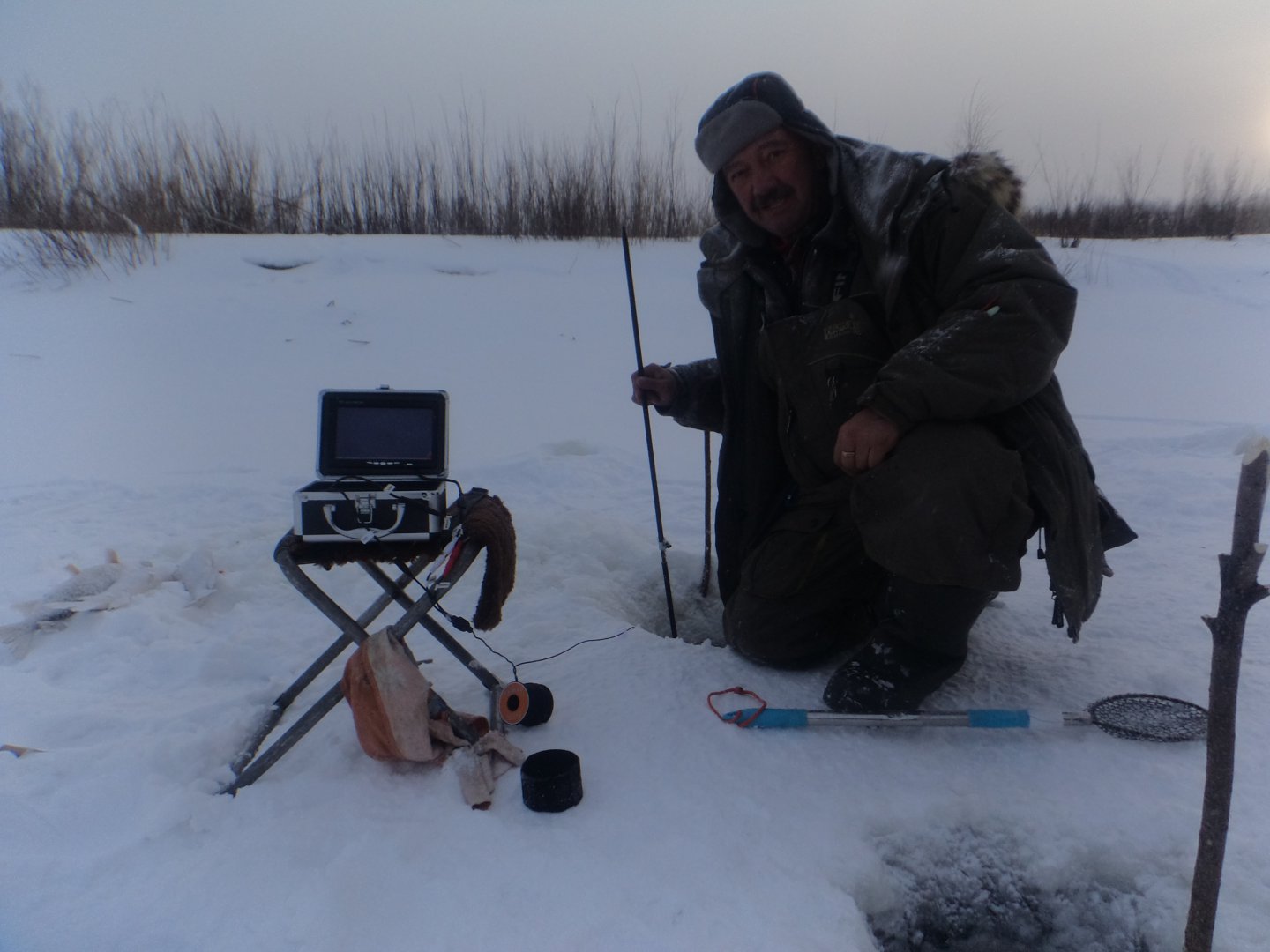 Думаю нового ничего не скажу, но для себя различаю два, а вернее три метода: первый - это сбор информации от рыбаков, основывающийся на предыдущих рыбалках, второй - это изучение местности, основываясь на проявленных чертах, это трещины, закоски, возвышенности, повороты реки и т.д., третий-это изучение картографического материала включая Googl, потому что основные фотографии сделаны по лету и четко видны песчаные косы, отвесные и пологие берега, заманухи посредине кос, изгибы с затишками, а это все места для охоты и питания щуки, основного объекта охоты зимой. Это теория, а в основном поиск основывается на опыте и анализе места рыбалки и порой стечение нескольких факторов приводит к хорошему результату, вот в следующем сюжете нам изгиб трещины показал место ловли и мы не ошиблись, отойдя от основной тропы на пару метров, а так возвращаясь, мы увидели Сергея, который сидел настолько правильно, что мы даже невольно удивились, насколько по-щучьи мы с ни вместе мыслим, хотя глубина была всего 40 см. Но всего не расскажешь, порой это на уровне чувств и видения, а начинаешь проверять и натыкаешься на поклевку.