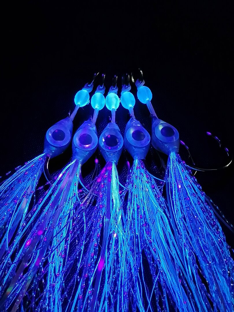 Помимо того, что внешне мои ассисты «под малька» выглядят интересно (по крайней мере для меня) – я не забываю добавлять в них элементы, которые светятся в УФ, это крайне важно для рыбы.