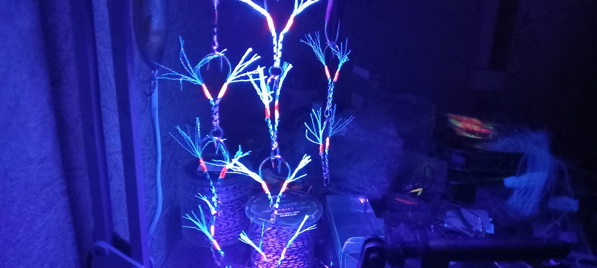 Но также есть такие: "Одинарные крючки Shout Jaco Hook JH-02 с намоткой кожи скумбрии и цветным люрексом." - они без светонакопительной точки, что по-моему минус.