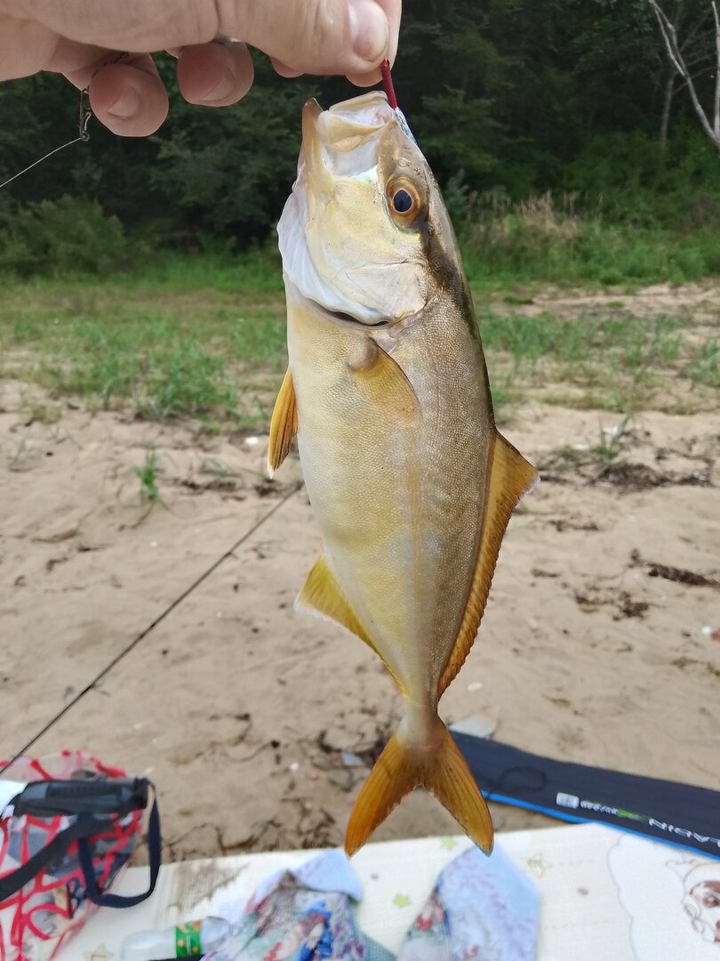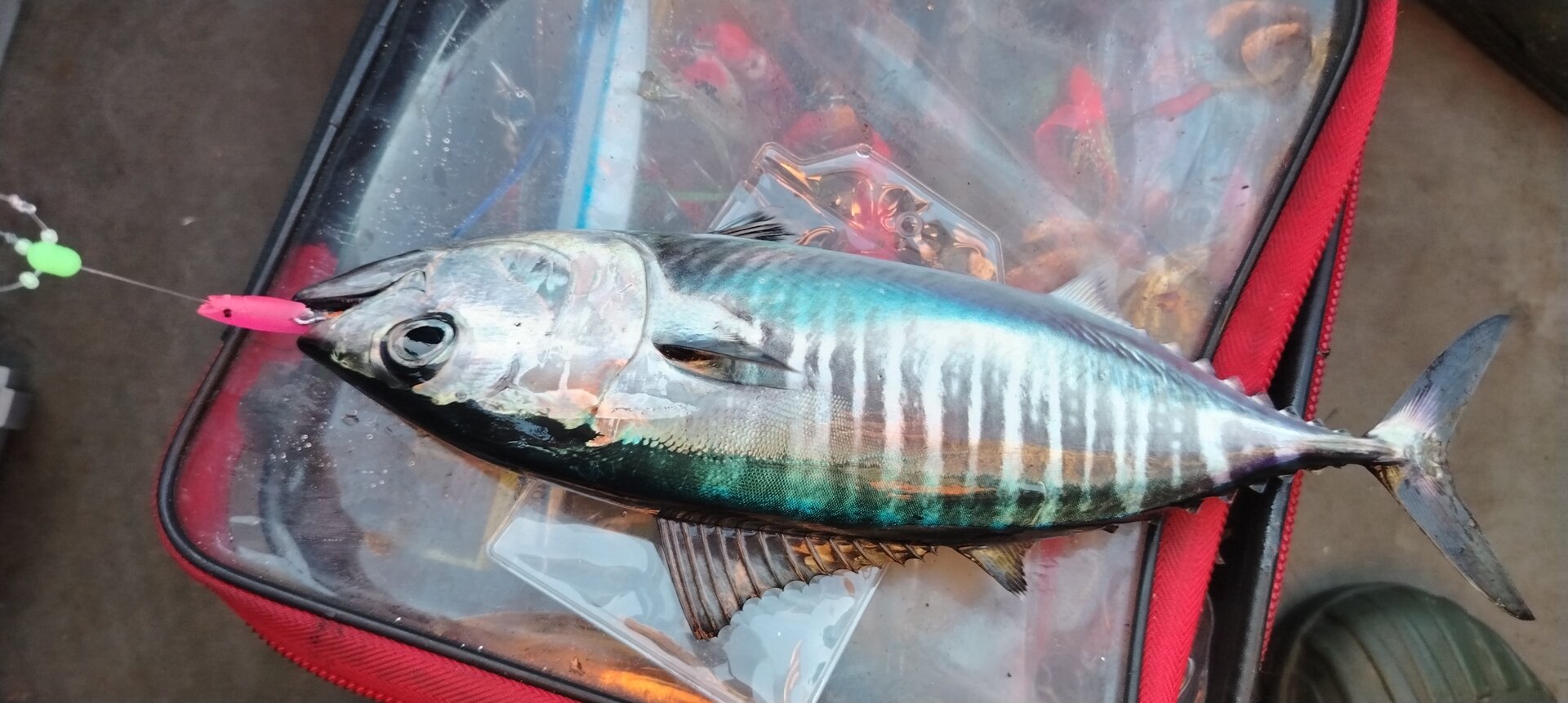 Поймал он её разумеется с берега на центральном пляже, на спиннинг с тестом до 15 грамм на пилькер весом 10 граммов и плетёнку 0,8...Приятель похвастал лакедрой на 12 кг.
