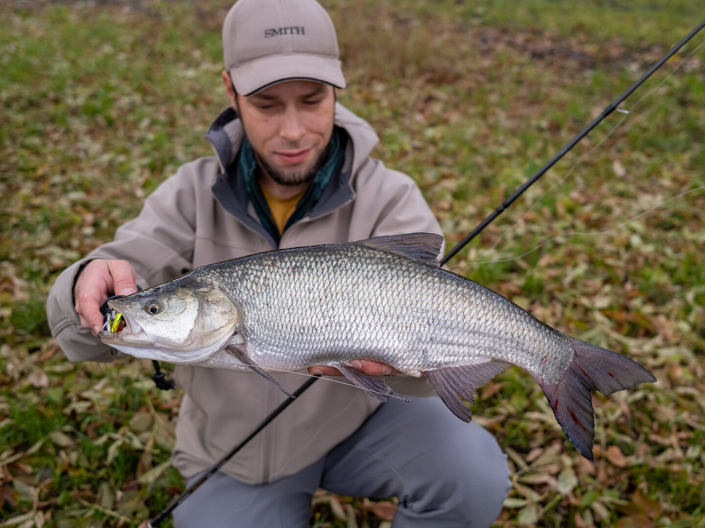 Обратите внимание на то, как засёкся этот жерех! Крючок висит буквально "на ниточке"! Пожалуй, у рыбы были неплохие шансы на сход, но этого удалось избежать. :)