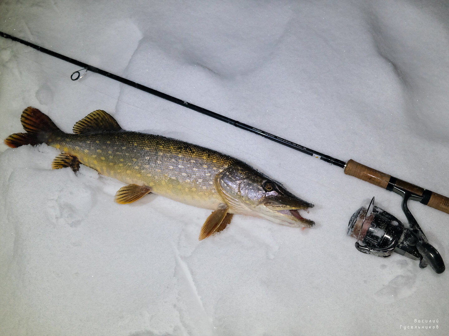 В один из декабрьских выходных неплохо поклевала щука. Начав рыбачить под вечер, я почти сразу поймал "трёшку", после чего уверенно пошёл в сторону уменьшения размеров пойманных рыб. Вскоре мне попалась "двушка", а ближе к ночи пожаловала на фотосессию "полторашка". Жирную точку в конце этой истории поставил товарищ, который взял у меня Swinger 130SP на "побросать", и практически сразу поймал шестикилограммовую толстушку. Люблю родную речку! ❤️