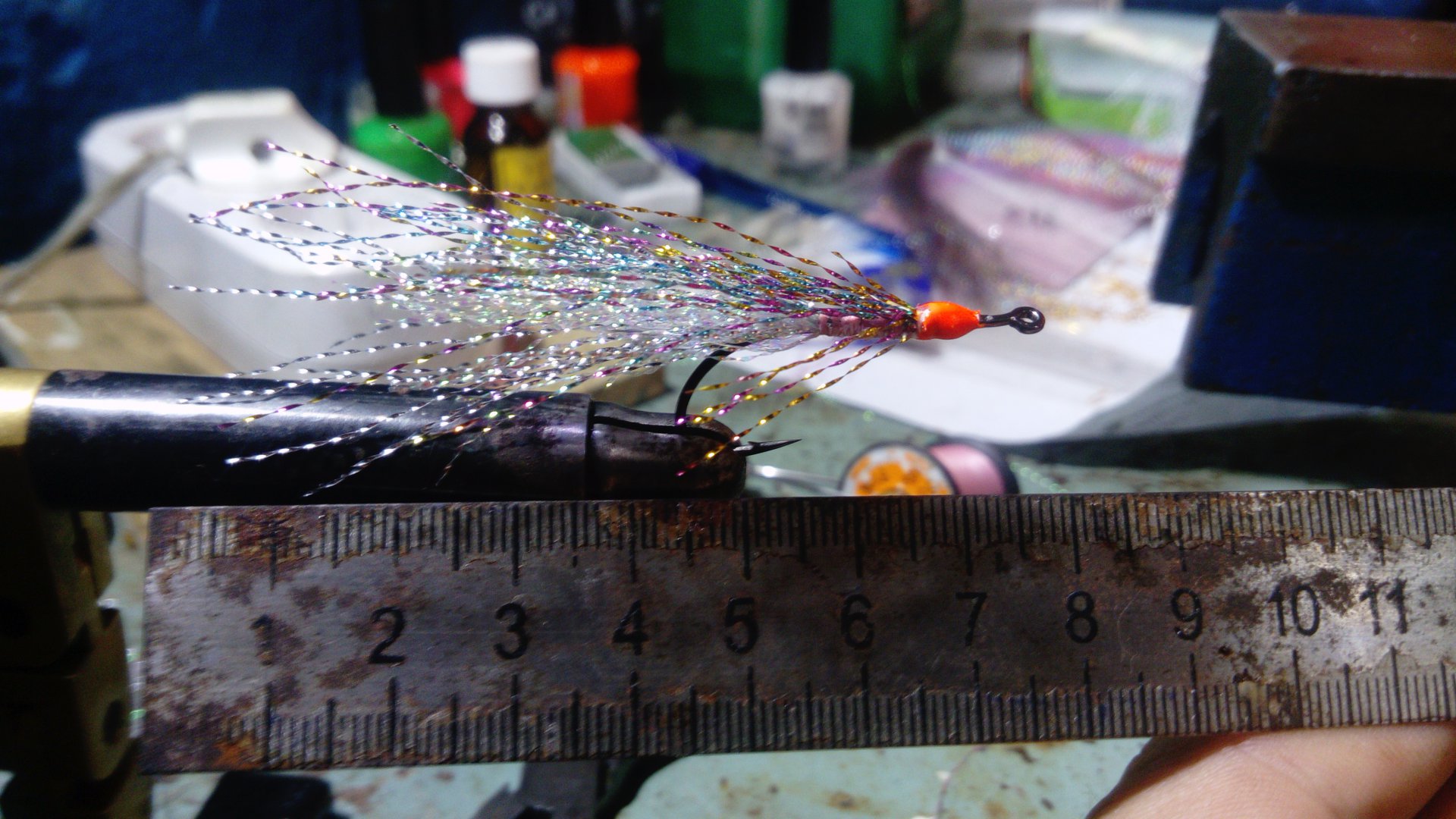 Напоследок :- волокна с Али понравились, отличный заменитель оленя. Для реальной рыбалки нет смысла так заморачиваться в качестве вязки. Кстати остриё крючков прятал в крыле - надеюсь что меньше зацепов и хватка рыбы будет куда надо.