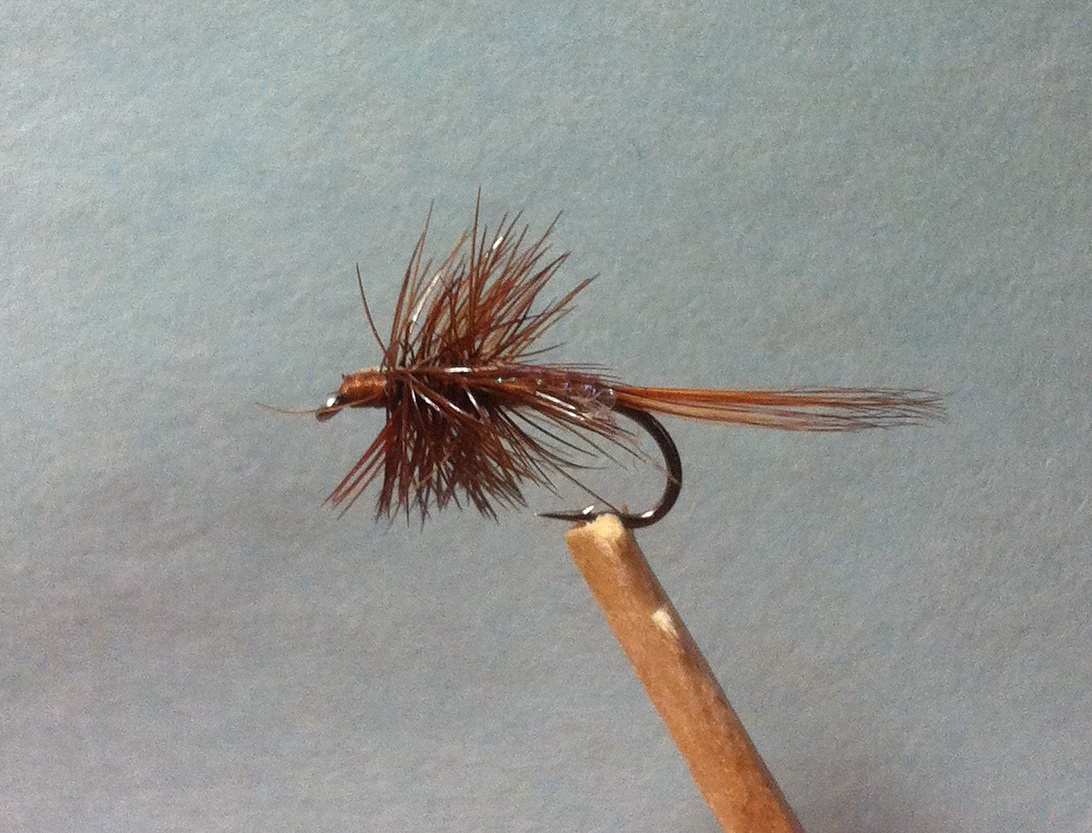 Хвостик, судя по фото, завален на бок. Тело должно быть у загиба крючка тонким и слегка утолщаться к крыльям. Крылья и ершик не пропорционально большие. Чтобы перо наматывалось ровно и перпендикулярно, надо его правильно закрепить на цевье - крест-на-крест. У Шишкина есть этот прием в книге.Запечатлел я своего "первенца"