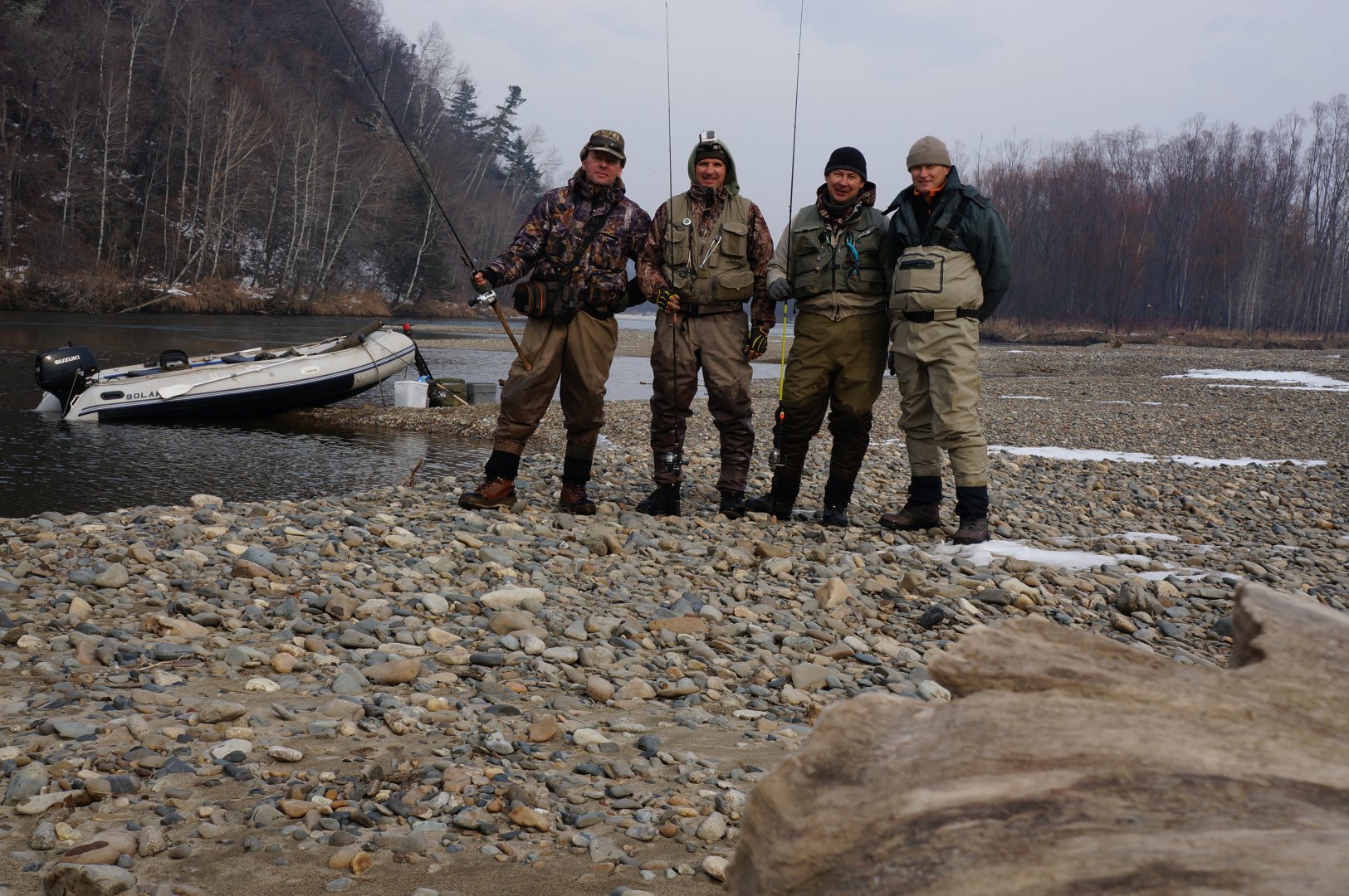 Теперь о приманках. Подчеркну, что здесь я излагаю исключительно своё мнение. У моих уважаемых партнёров оно может быть другим. Колеблющиеся блёсны в целом проявили себя отлично. Облавливаемые нами места изобиловали корягами. При проводке, после первого же касания дна блесной, я определял глубину залива и, соответственно, задавал необходимый темп проводки, чтобы не касаться дна, стараясь при этом всё-таки вести приманку максимально ближе к нему. В результате зацепов у меня было в разы меньше, чем у партнёров на воблеры. Дело в том, что парни использовали в основном очень крупные ДИПы-составники с заглублением от 1,5 м и глубже. Заставить работать такой воблер можно только обеспечив достаточно высокий темп проводки, а это значит неизбежно загнать его на заданную глубину. А там воблер подстерегали не только таймени, но и (гораздо чаще) коряги. В результате парни тратили много времени на освобождение от зацепов, и эффективность использования имеющегося времени у них была ниже. Проше говоря, я кидал чаще. Кроме того, по-моему, колебалкой можно задать более живую игру, чем равномерная проводка воблера-составника, или крэнка.
