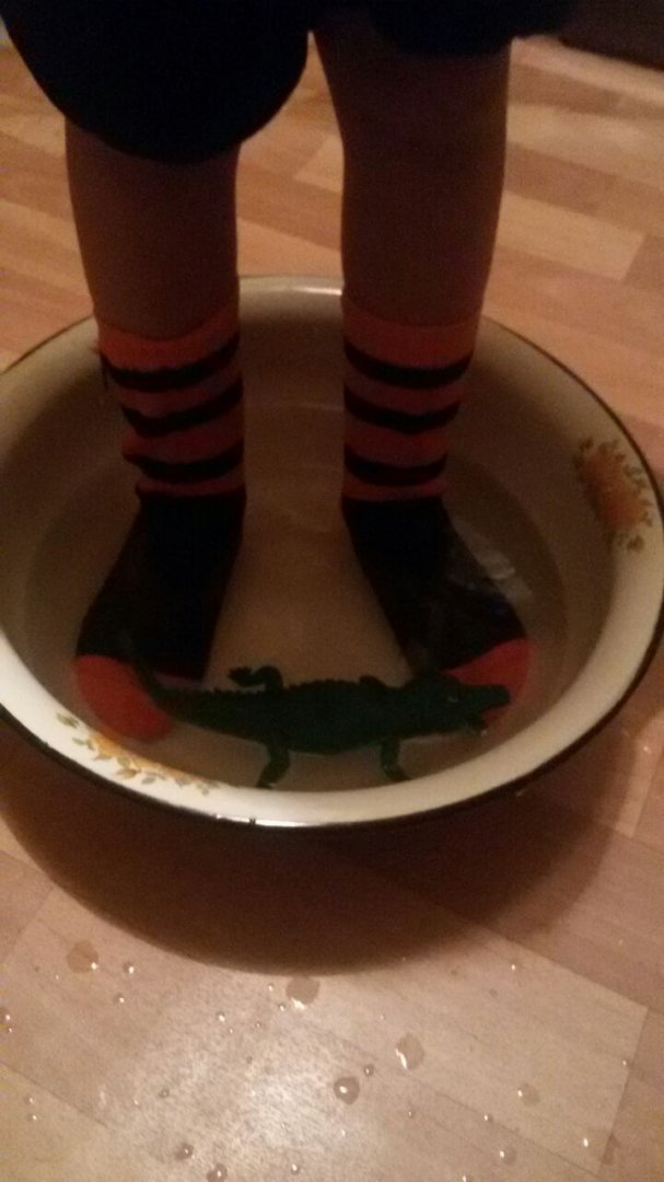 Тест драйв в тазике)))), ноги сухие. Классные носки!!!