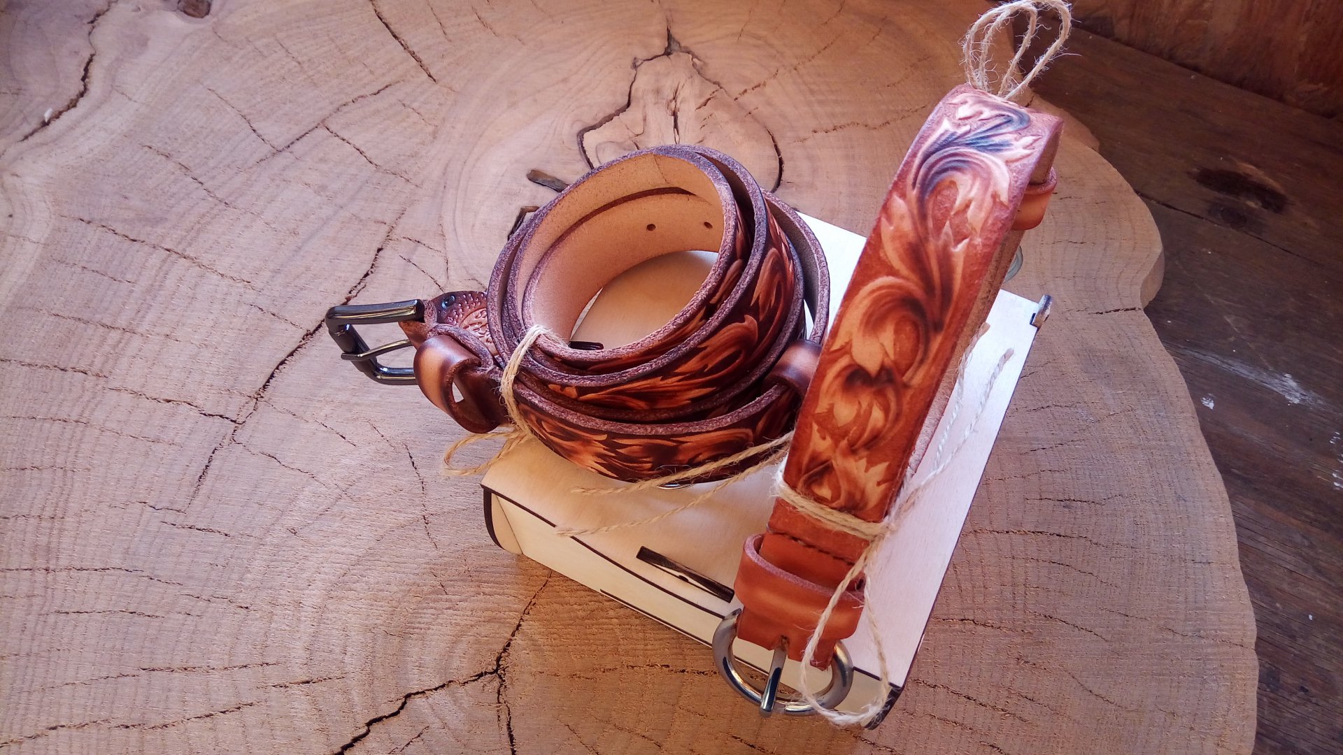 На чехле из растишки изображен герб этого города. Сначала тиснение, затем покраска акриловыми красками.