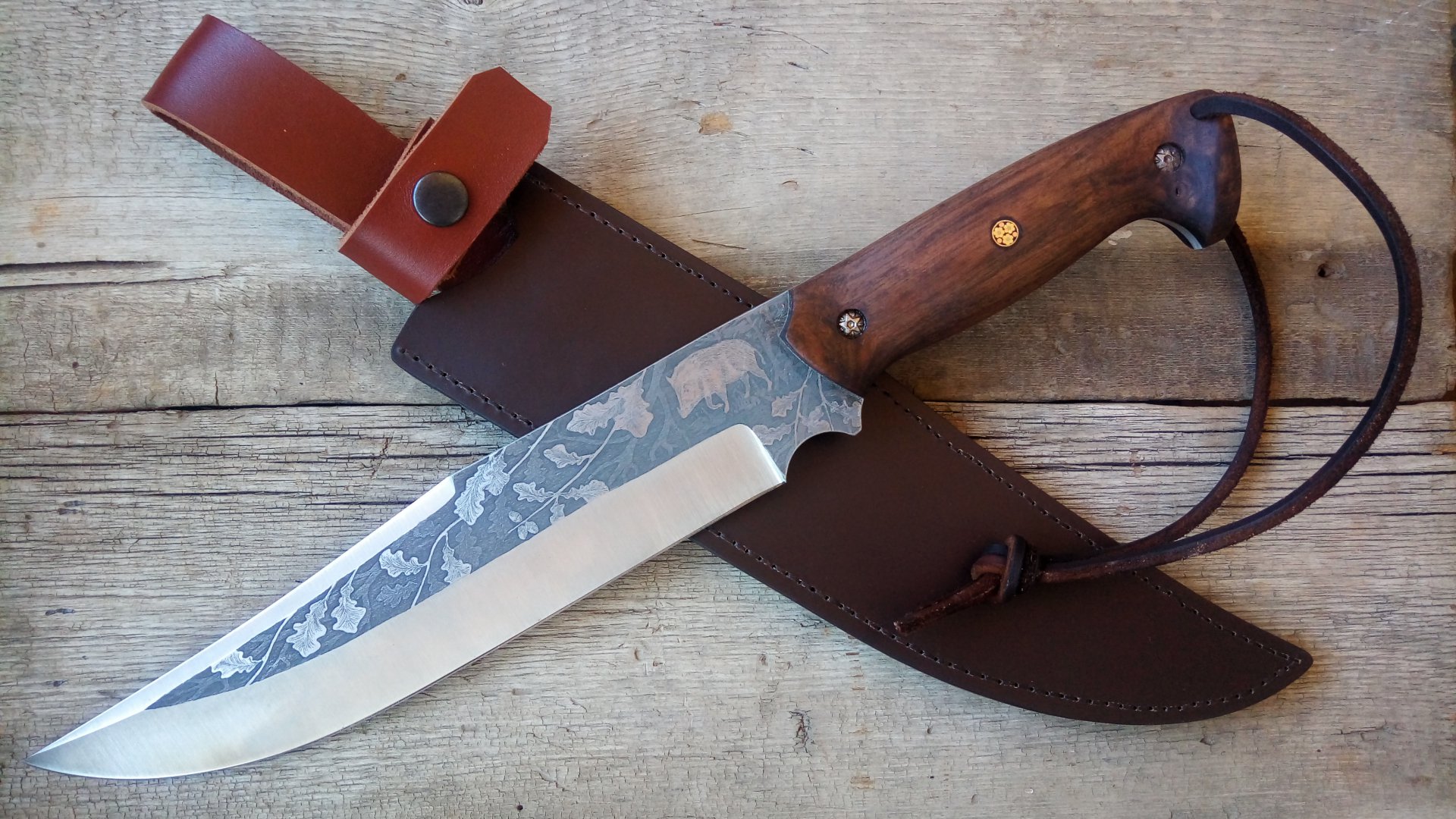 Главное большой и надежный! Когда-то пришел к выводу что для охоты в тайге в одного, такой, ну или примерно такой просто не заменим. На промысле пушнины такой нож всегда на поясе, срубить и очистить ветку для очепа, зарубить затёску, нарубить лапника на крышу домика, порубить на наживку того же рябчика или белку, да и много чего ещё можно сделать таким ножом!Топор конечно тоже носишь с собой, но не часто, в основом при установке капканов, но он обычно за спиной, и постоянно доставать его при наличии такого ножа порой незачем, да и некогда. Для мелких работ всегда с собой складишок с двумя лезвиями,открывалкой, шилом, штопором и отвёрткой. Только у меня ножны без всяких кнопок и ремешков, просто всадные по типу финских, так на много удобней(помоему). Хорший и красивый нож! Не реклама-просто мнение