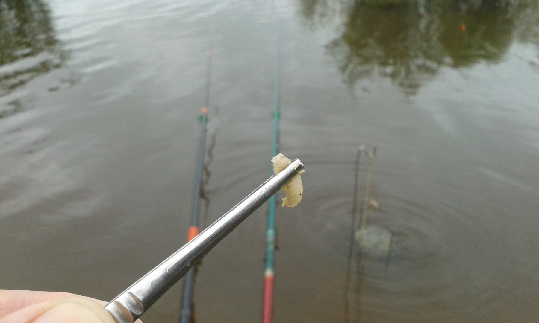А как на крючке с помощью пинцет чтоб руки не пахнет.