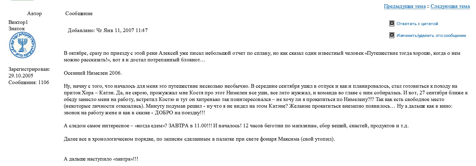 Вот совсем по-другому писались те отчёты, - самые первые. Отчёты на том форуме были просто кладезь информации. Да чотам греха таить, - я многому из тех отчётов научился. Вот только не понимаю, почему сейчас не пишет никто...