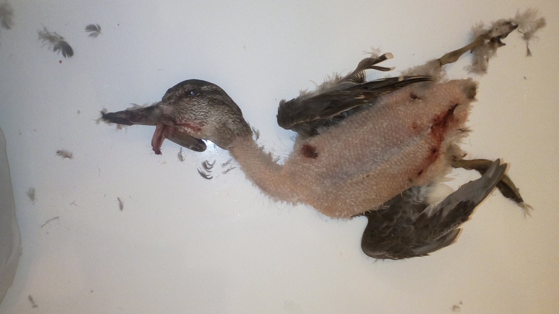 значит все же было ближе 20 метров.С ним все в порядке. Все конечности переломаны, клюв оторвало, череп раздроблен, внутри каша.