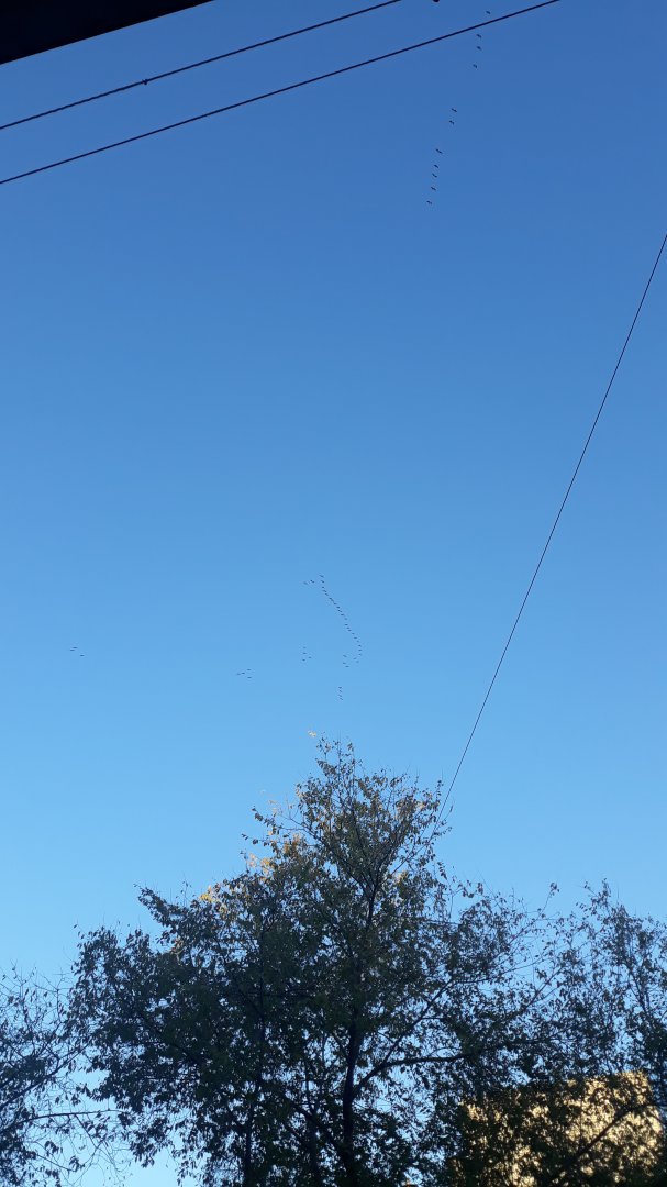 Летят родные, дразнят и перекликиваются. Над Краснореченской на Владик потянули. Фото с балкона.