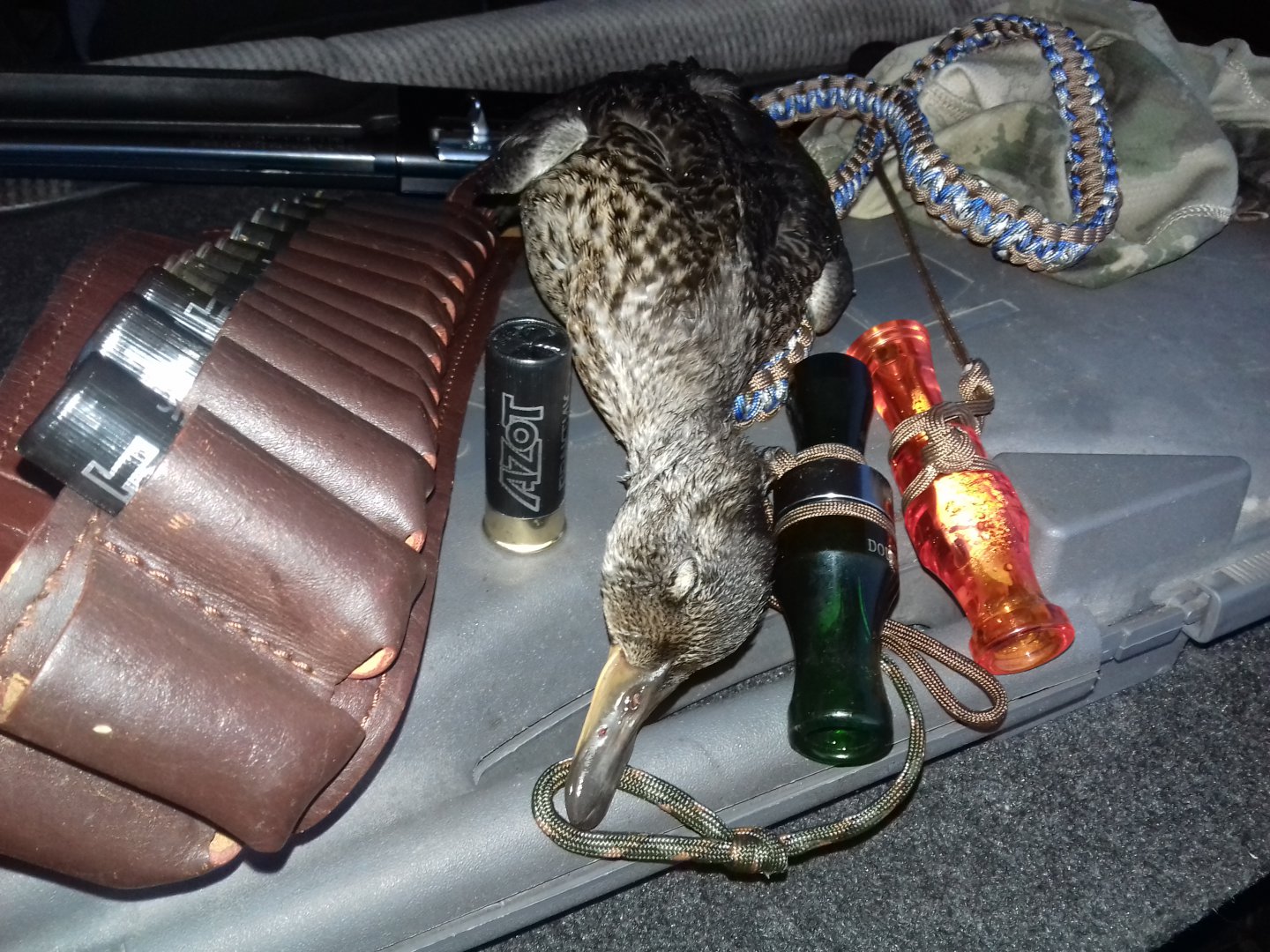 В пятницу с товарищами решили заранее заехать и при въезде в угодья меня остановили инспекторы. Посмотрели и документы, и оружие, и рюкзак. У меня всё в норме. На вопрос можно ли заезжать накануне открытия, ответили, что нельзя. Но против ничего не имеют, так как сами охотники и всё понимают. В целом общением остался доволен, очень тактичные и приятные люди. За два дня втроём добыли шесть уток. Утки довольно много, утка вся на крыле и хлопунцов вообще не встречал. Активно летают на зорях приличными табунами.