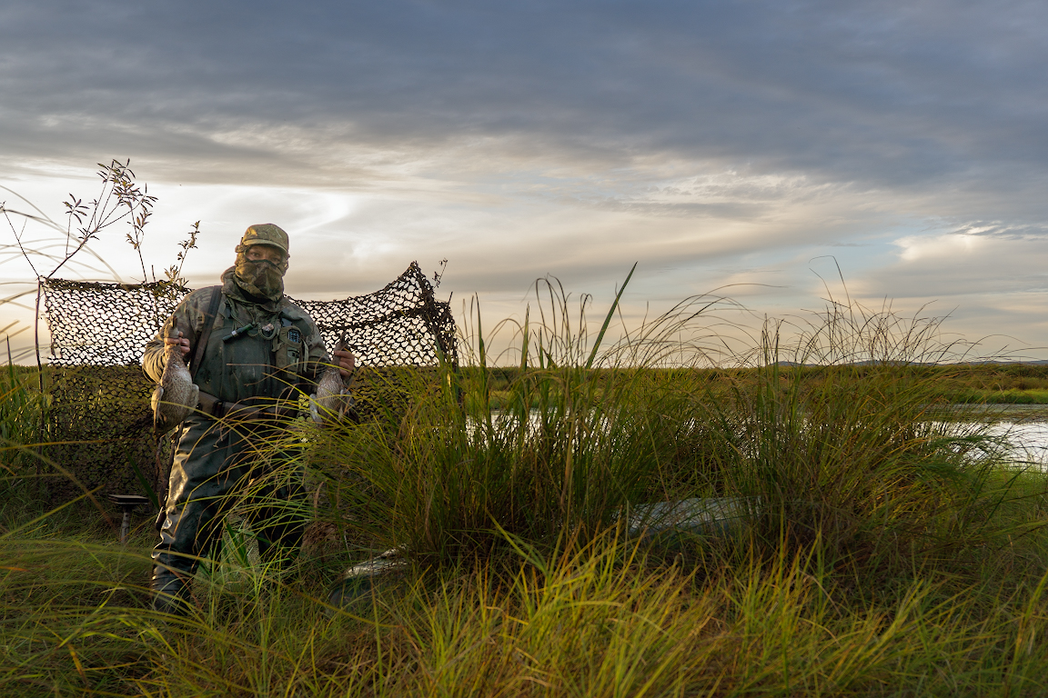 Часа полтора потратил на обустройство места охоты: накачал маленькую лодочку, расставил чучела, сделал скрадок.