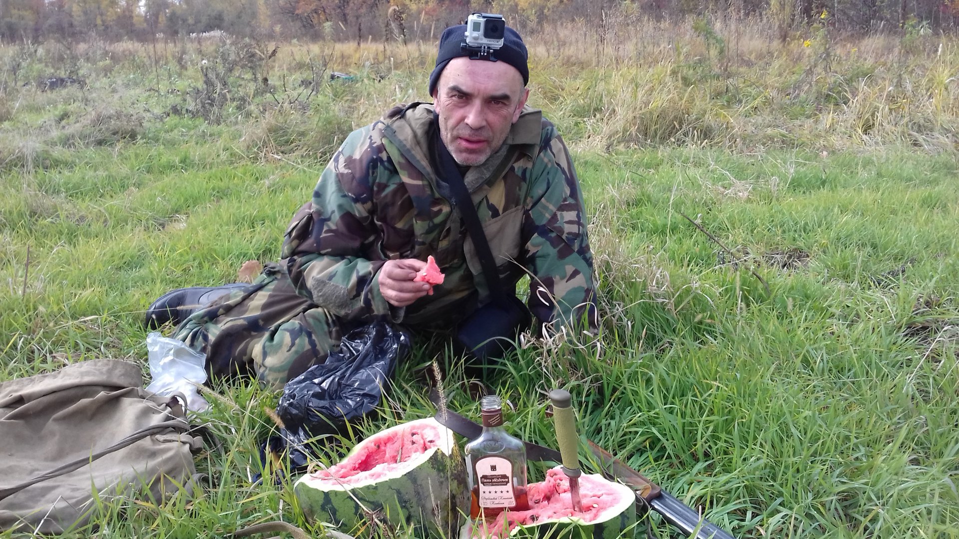 Этот как надо любить арбузы чтоб с собой его в рукзаке по полям таскать, теперь понятно почему Юра постройнел.Надо взять себе на заметку.