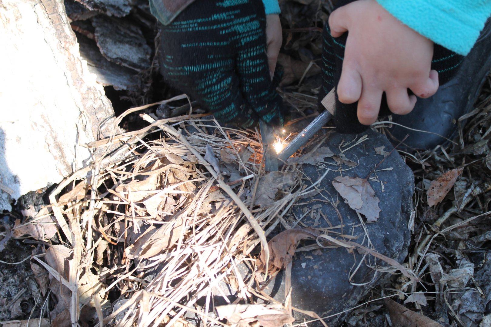 А это испытания, снизу трут,на нем сухая трава и ветки.