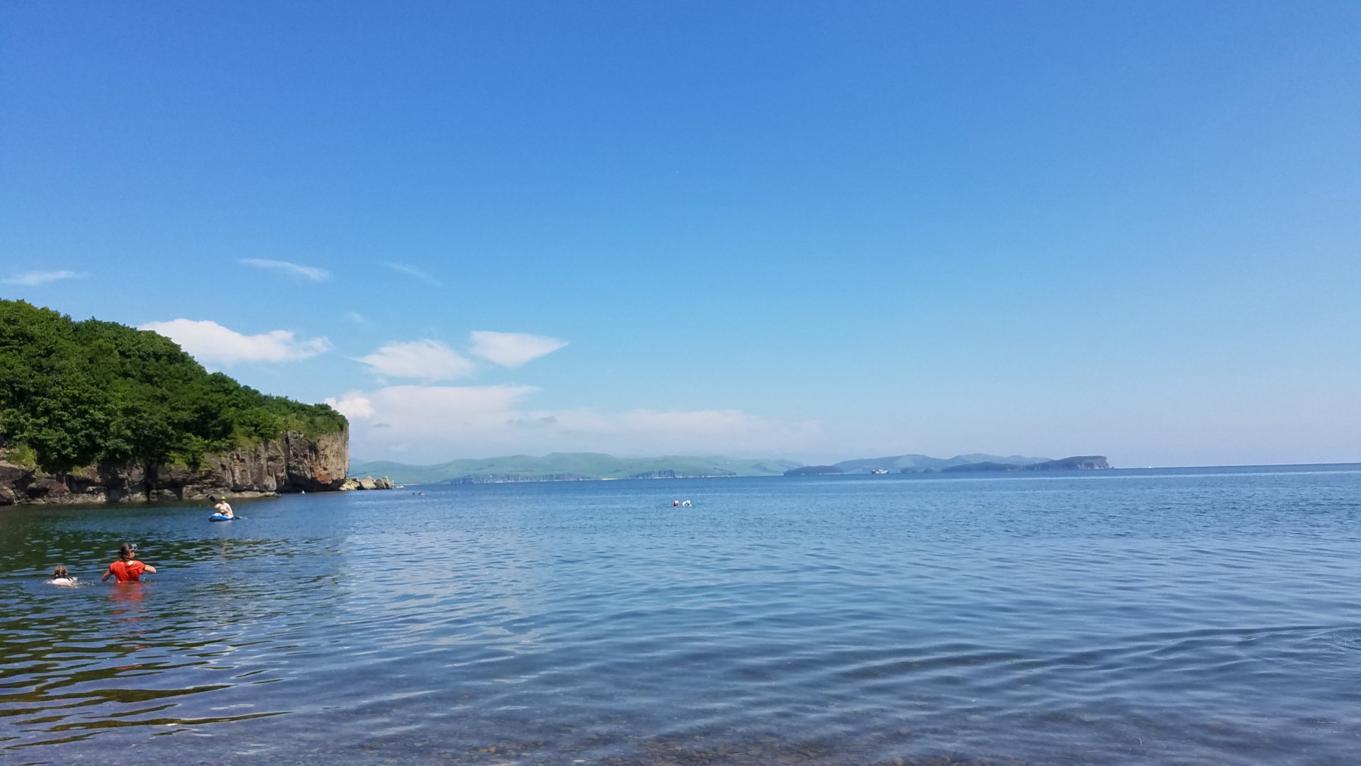 Второй день в Славянке, бухта Нерпа. температура воздуха, каждый день 30~31, жарко, дождей нет. Вчера вода, как в Таиланде, градусов 25, сегодня подошла холодная, не больше 20°