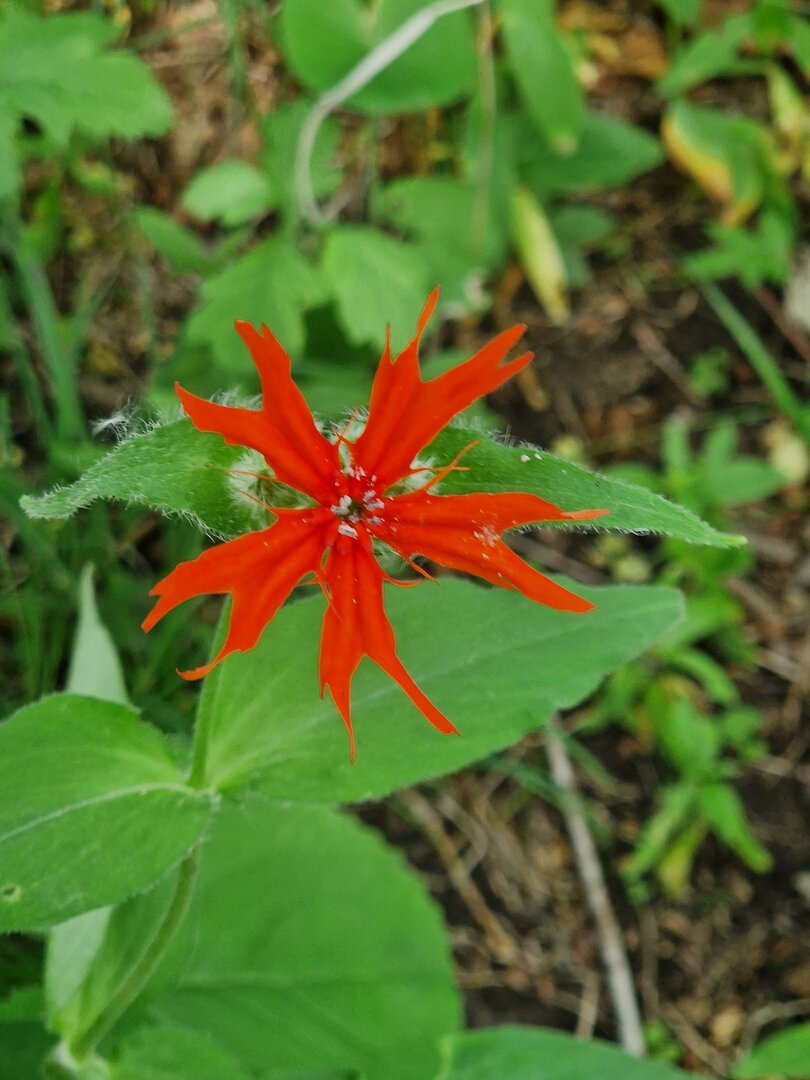 Цветочек красненький, прикольный. Погуглил: Зорька обыкновенная или Лихнис халцедонский.