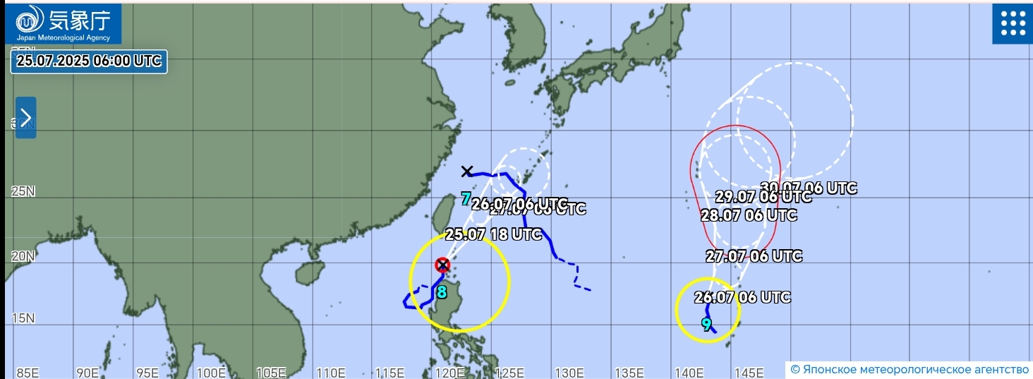 Слева-тропическая депрессия,справа-супер тропический шторм.