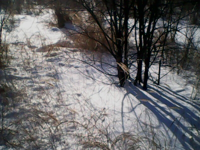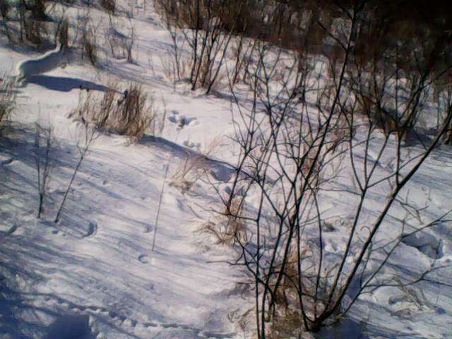 Сегодня не пропустил порошу. В результате:добыт четвертый в сезоне,потом вытоптан был еще один, но он меня обманул. А третьего, уже обманул я. Зайца видите? А он там есть! Наблюдал за ним с 5 метров на лежке минут пять. Одно ухо поднял, им подергивает-слушает, глаз с меня не сводит. Весь подобрался. Потом я пошевелился. Он свечкой прыгнул. Фото сделаны с телефона. Не судите. Стрелять не стал....