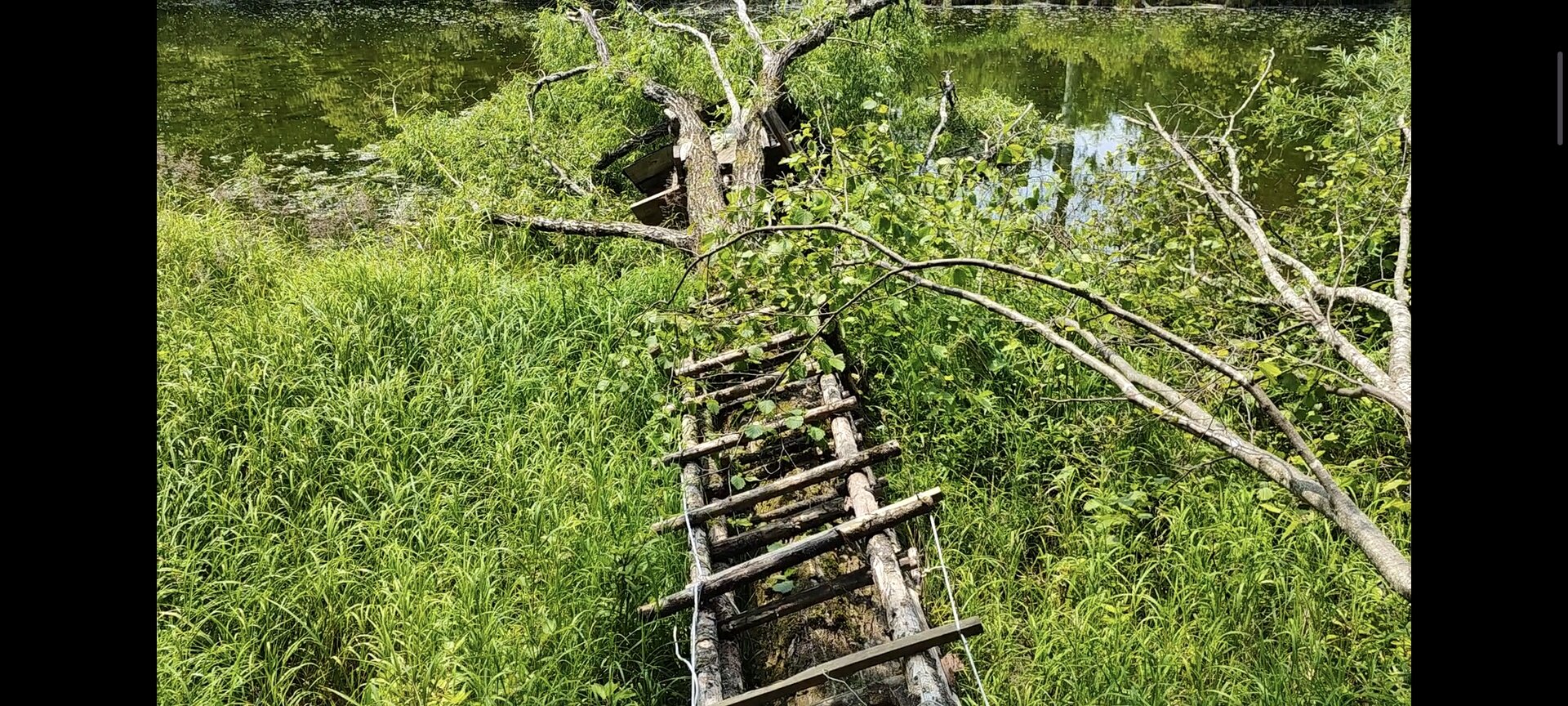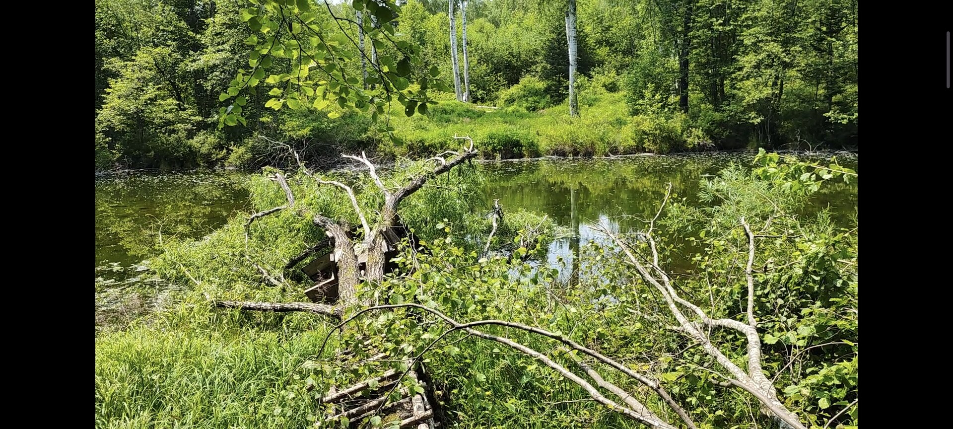 А бывает приходишь, а капитальный лобаз, который на века строился), в озере лежит вместе с деревом)