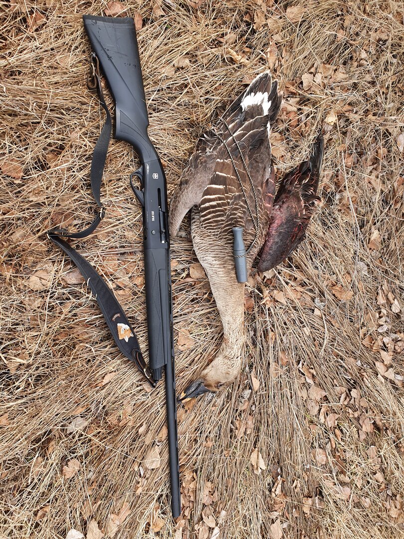 Заряжайте дробь №1 вместо пуха будут падать гуси5 дробин дроби номер 3. Бил в штык, по остальным, как только не брал упреждение, но не фига, думал упадёт фиг там, так и пошли низом, но пуха очень много, вторую весну стреляю гумяша и второй раз крыло перебитое, размер ну очень крупный, на западе серый и то мельче