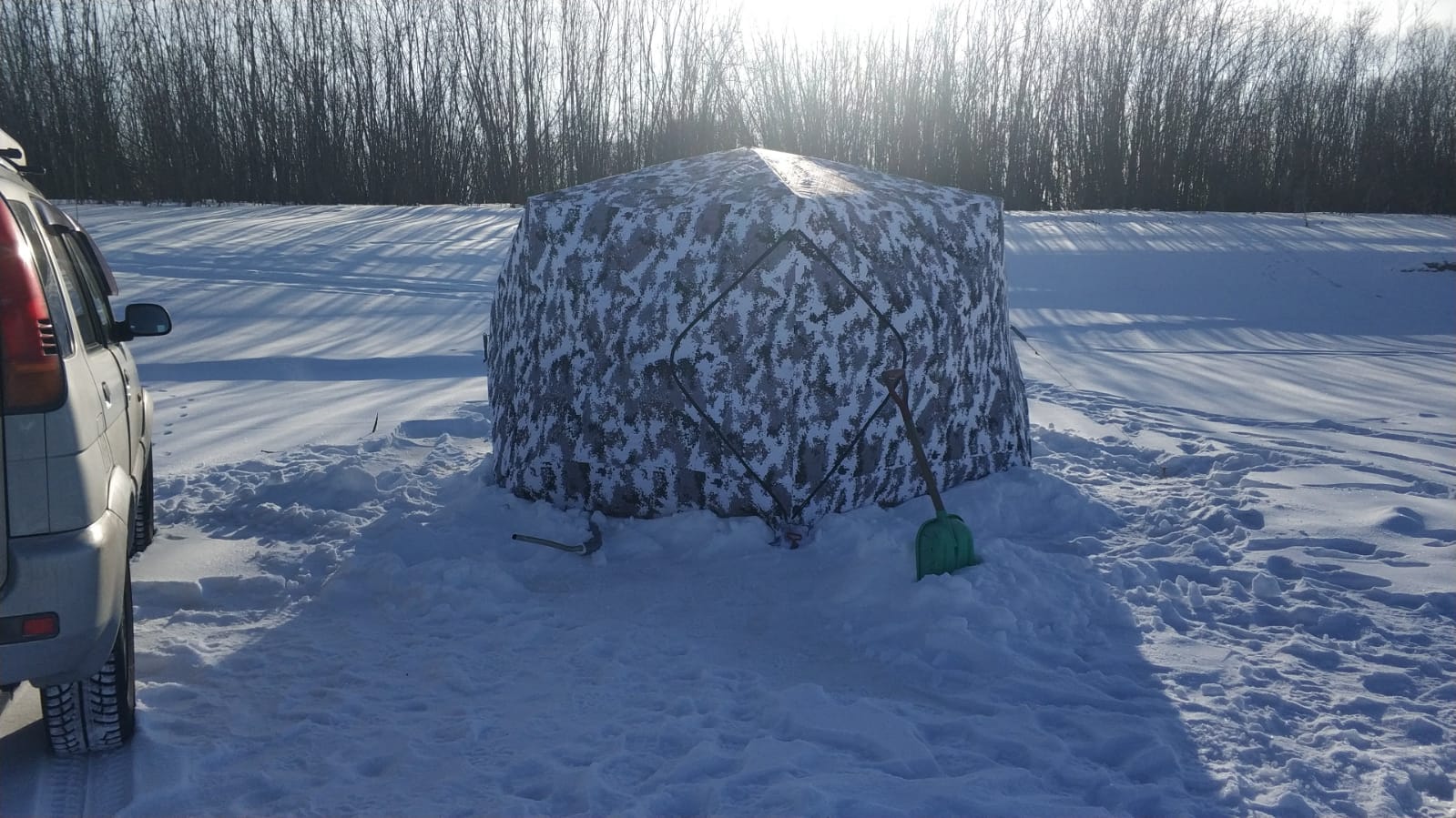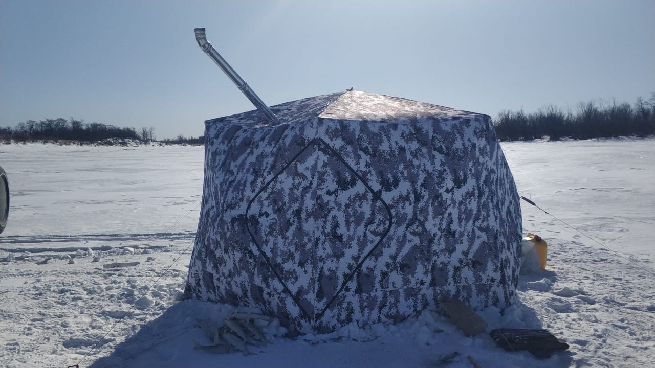 2. Перед следующей ночевкой был приобретен китайский шестигранник 3.2x3.6. Отопление - сухой фен. За бортом -35.